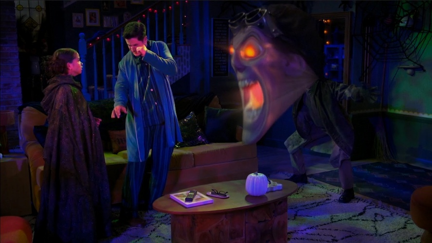 Trick-or-treaters arrive at the Russo home and get more than they bargained for: Milo as a severed head on Giada’s séance table, Billie popping out of the mirror, ghosts materializing behind the couch, and Roman still in bald cap disguise. They scream and run, satisfied customers of the most haunted house on the block. But Justin gets the final scare when Billie reveals she used his credit card on GhostMates, which set him back $257! It’s the most terrifying thing he’s endured all Halloween.