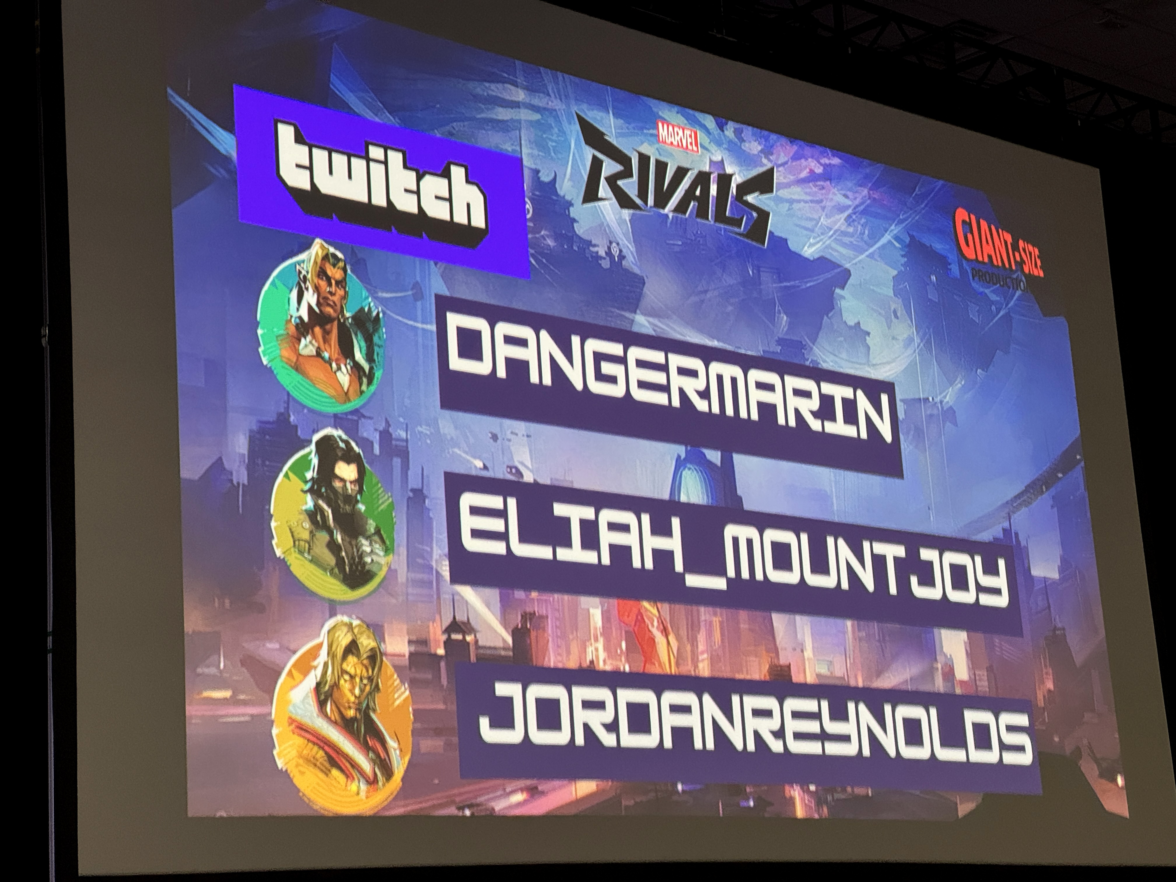 The voice cast of Marvel Rivals took the stage to talk about what it's like being part of such a popular video game. A few of them even displayed their Twitch handles on-screen so that fans could follow along as they play.