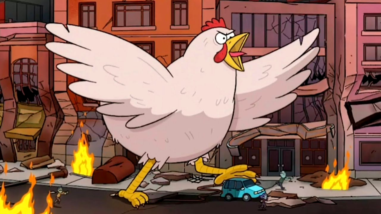 This launches us into our various adventures. Cricket and Remy are going to try and launch that chicken into space, recalling their very first adventure together and instead find themselves at Big Tech where the chicken gets enlarged to a monstrous size that sees our friendly duo jump into a pair of mech suits in a Kaiju battle that really ruins Gregly’s day. To dispense of the chicken, Cricket kicks the chicken into space, where it accepts his fate burning into the sun and causing the skies of Big City to rain fried chicken.