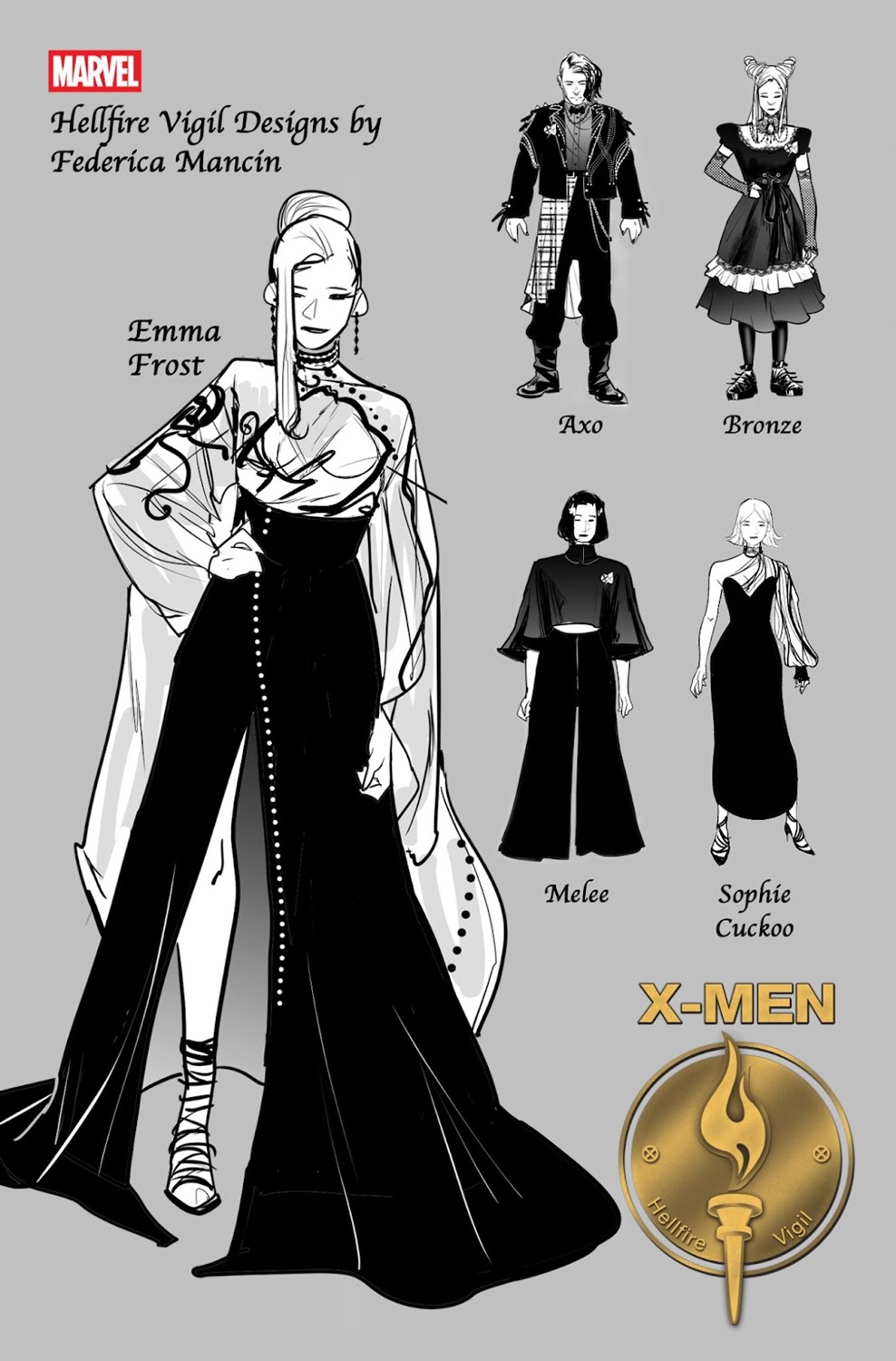 - Federica Mancin: “Being part of a major event like X-Men Hellfire Vigil was an incredible mix of excitement and nerves. I am truly grateful and humbled to be given the unique opportunity to contribute to it and work on the outfits for Emma, Sophie and the trio from Exceptional X-Men. It all came as a big challenge, but I was lucky to work with such an amazing team that helped me throughout the process and inspired me to do my utter best."