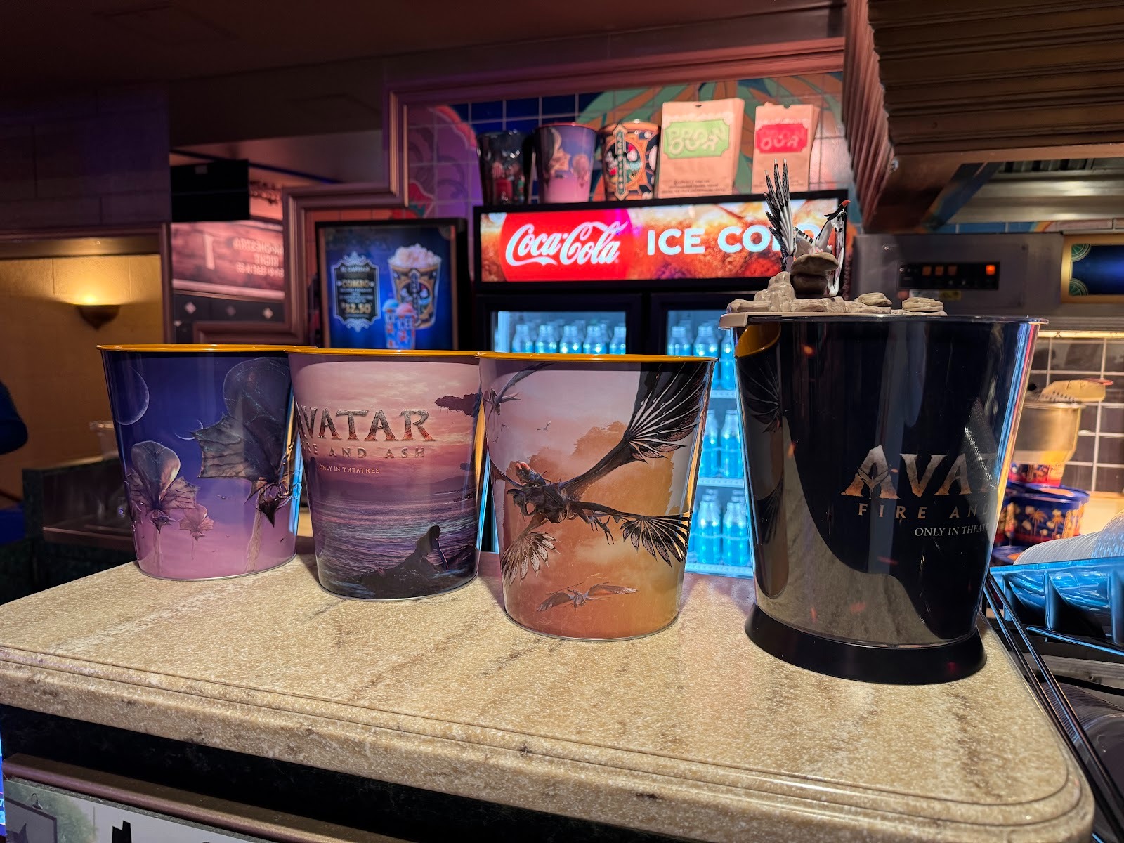 The concession stand features items themed to both of the films, including various popcorn buckets and sippers to help further enjoy whatever of the two films you’re seeing at the theater.