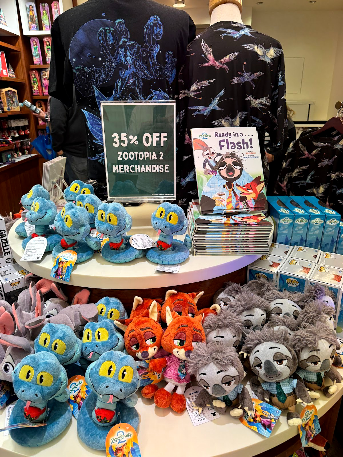 Next door, the Disney Studio Store also features a number of Zootopia 2 goodies, including plush, toys, apparel, and the requisite Spirit Jersey.