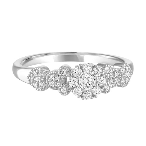 Celebrate your everlasting love with the enchanting engagement ring by Rebecca Hook, featuring the iconic Mickey Mouse. Expertly crafted from 14k white gold and adorned with handset natural diamonds, this exquisite piece showcases the beloved shapes of Mickey icons, two hearts, and a flower.