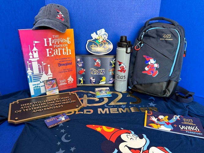 Alex checks out this year’s Gold Member gift options which are all included as part of the Gold Complete Plan ($299.99 per year). Standard Gold Membership allows fans to pick from one of four exclusive gifts ($99.99 per year) that accompany their Membership Kit. There’s a Disneyland plaque and book, Spirit Jersey, Fan pack with backpack, waterbottle, and hat, and a pin set.