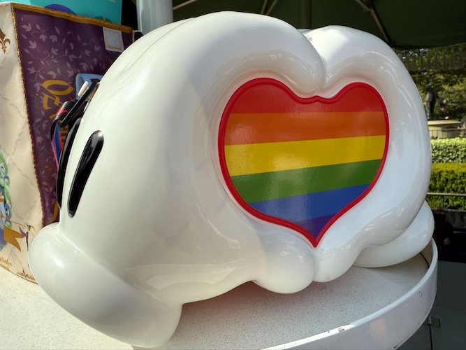 On a recent trip to the Disneyland Resort, Laughing Place spotted a new Pride Month popcorn bucket, now available throughout the resort. Featuring Mickey Mouse’s gloves making a rainbow heart, fans can pick up the receptacle for $29.50.