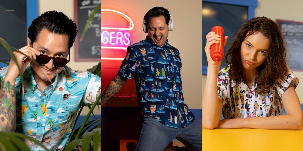 Well isn’t this delicious? RSVLTS (The Roosevelts) barely has to leave HQ to bring us their latest fashion collection which is inspired entirely by the wacky cast of characters from Bob’s Burgers! Five new Kunuflex button-down shirts have been given the Bob’s Burgers treatment and the Belcher clan (and all of Seymour’s Bay) happily make an appearance.