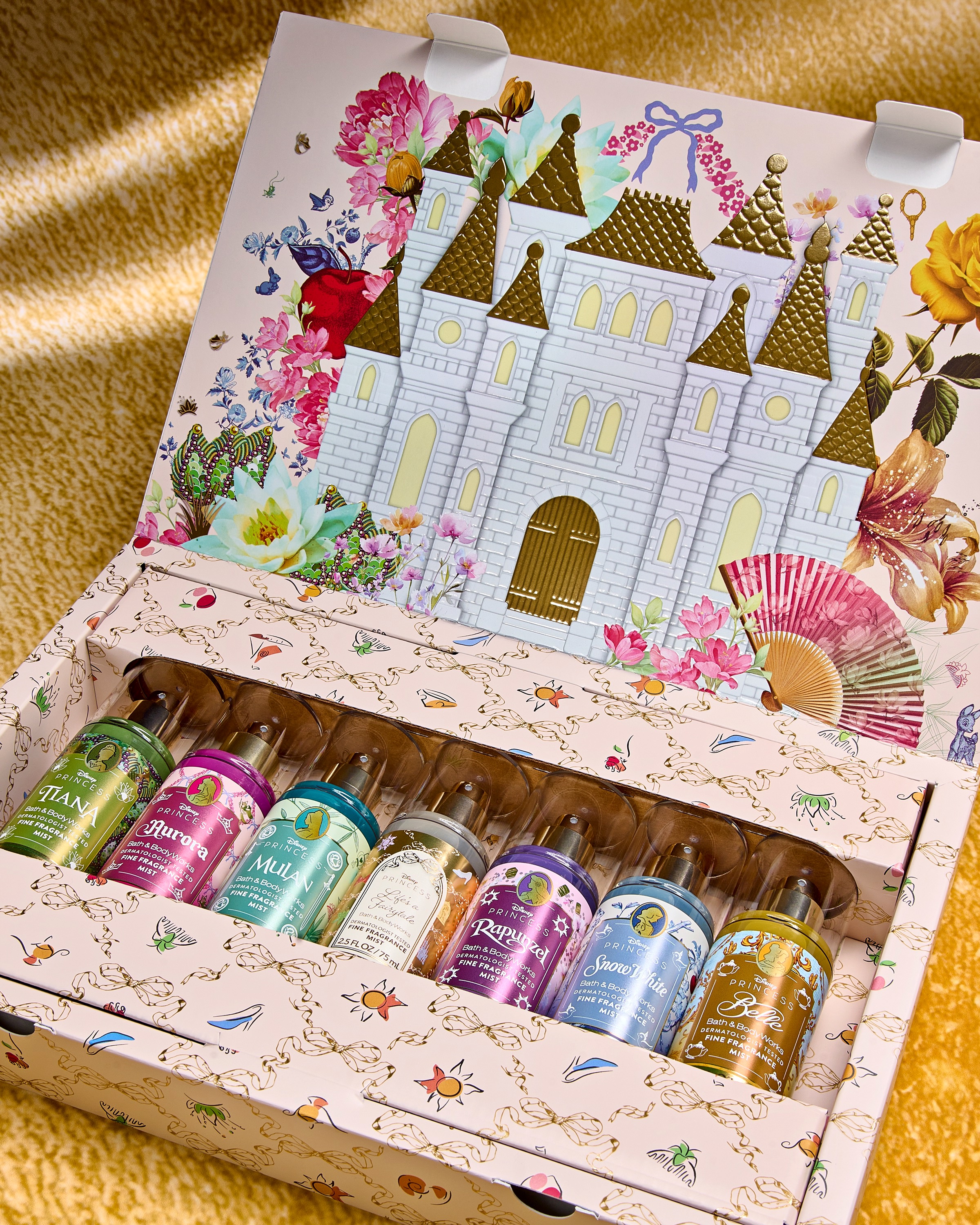 - Rapunzel: Glowing sundrop flowers and rich nectar wrapped in golden musk evoke Rapunzel’s vibrant and optimistic personality.