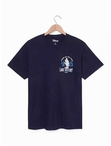 Disney A Goofy Movie Lake Destiny T-Shirt — BoxLunch Exclusive ($29.90) - “Stay comfy on the road with this Goofy Movie tee! A print of Lake Destiny features on the front, while a large visual of Goofy, Max, and Bigfoot stars on the back—perfect for fans seeking a burst of nostalgia."