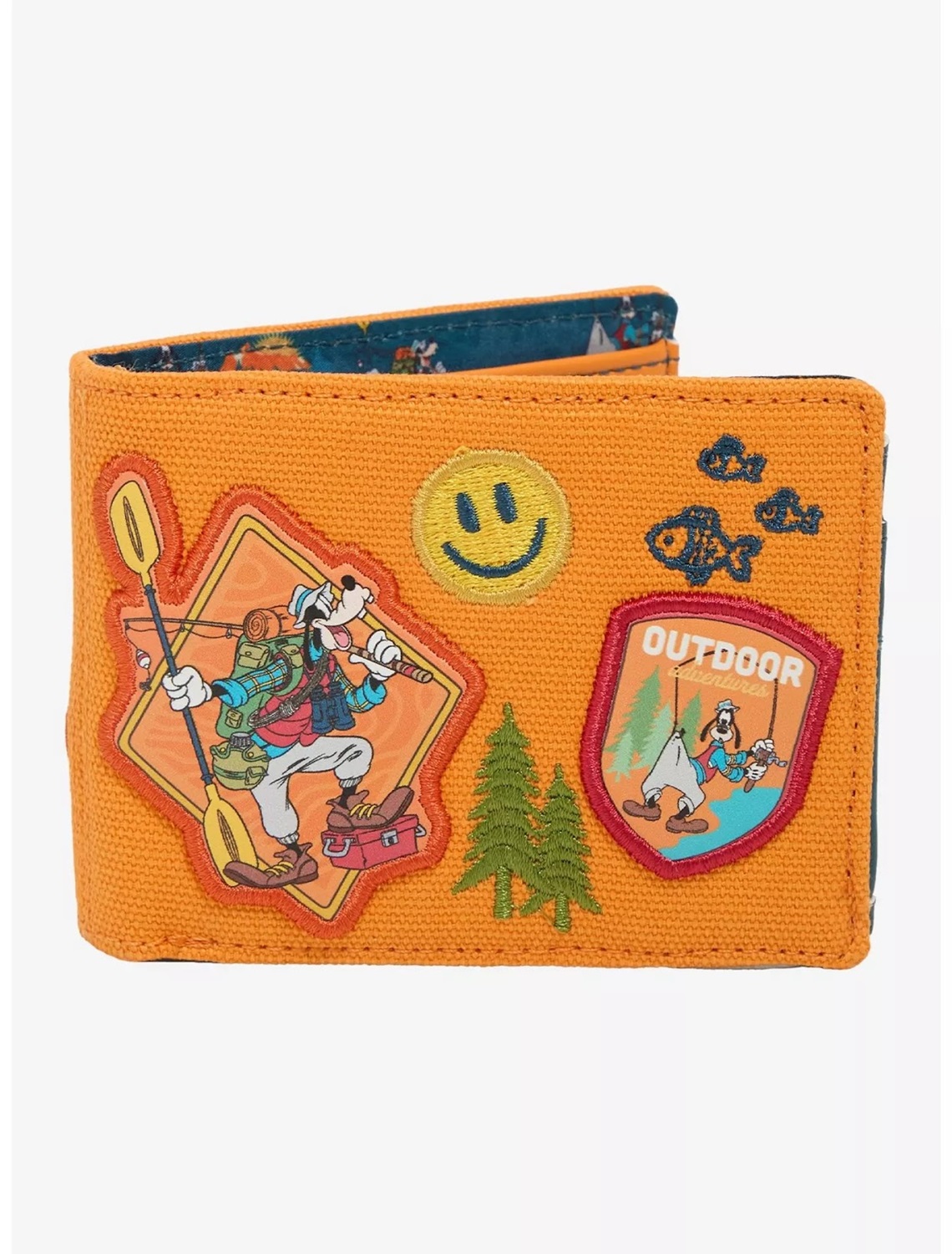 Loungefly Disney A Goofy Movie Camping Canvas Wallet — BoxLunch Exclusive ($27.92) - “This wallet is first on your packing list! With embroidered and applique patches, this Goofy Movie accessory features a canvas exterior that shows off Goofy and outdoor icons. Inside, three card slots, a snap pouch, and bills compartment leave plenty of room for your valuables. Don't miss the matching mini backpack sold separately!"