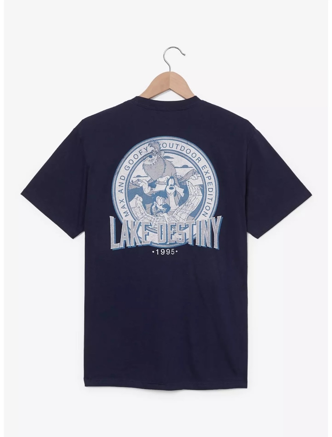 Disney A Goofy Movie Lake Destiny T-Shirt — BoxLunch Exclusive ($29.90) - “Stay comfy on the road with this Goofy Movie tee! A print of Lake Destiny features on the front, while a large visual of Goofy, Max, and Bigfoot stars on the back—perfect for fans seeking a burst of nostalgia."