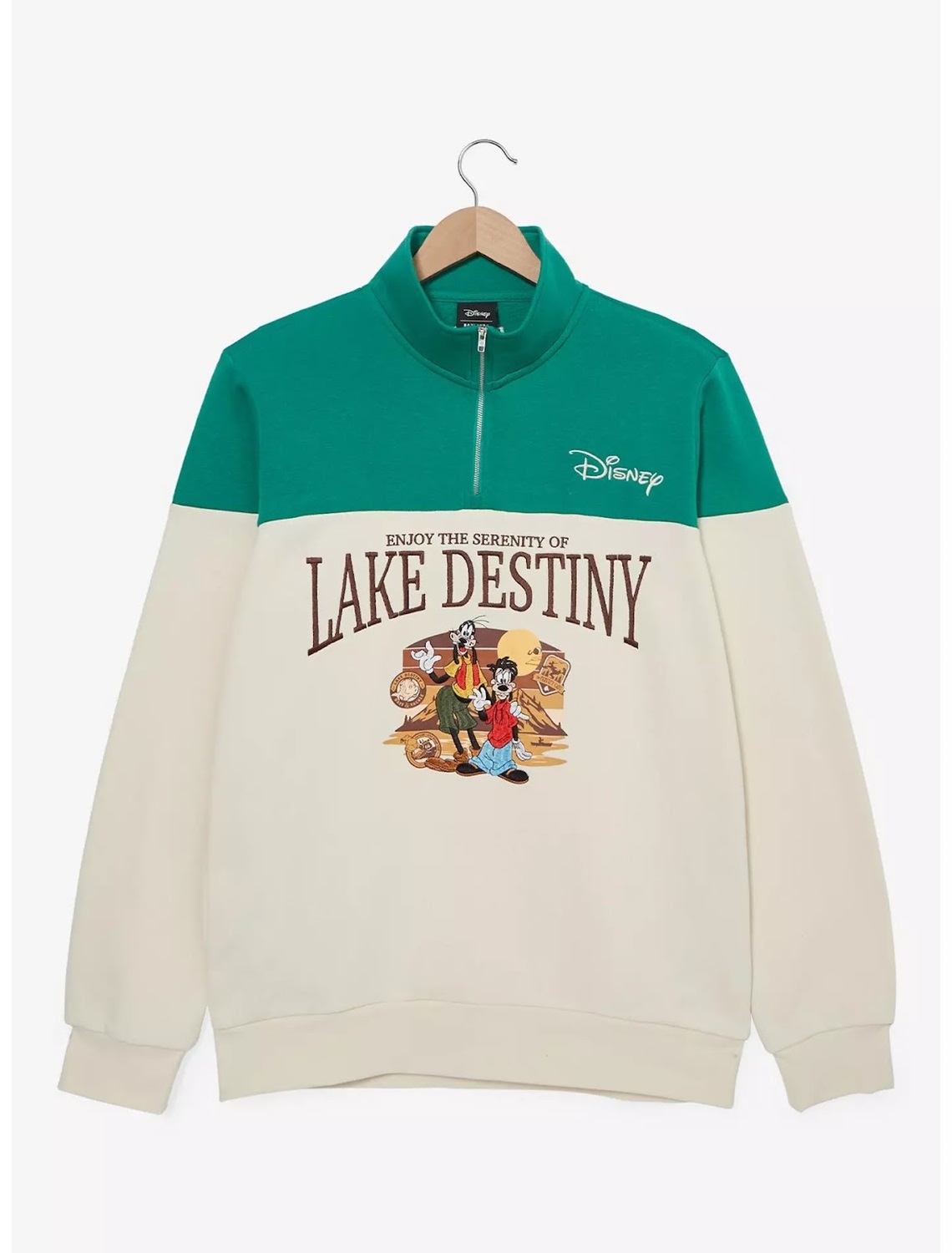 Disney A Goofy Movie Lake Destiny Quarter Zip Sweatshirt — BoxLunch Exclusive ($51.92) - “Remember your landmark adventure with this quarter zip! This Goofy Movie jacket features Max and Goofy below "Lake Destiny" lettering, paired with color blocking and Disney's name."