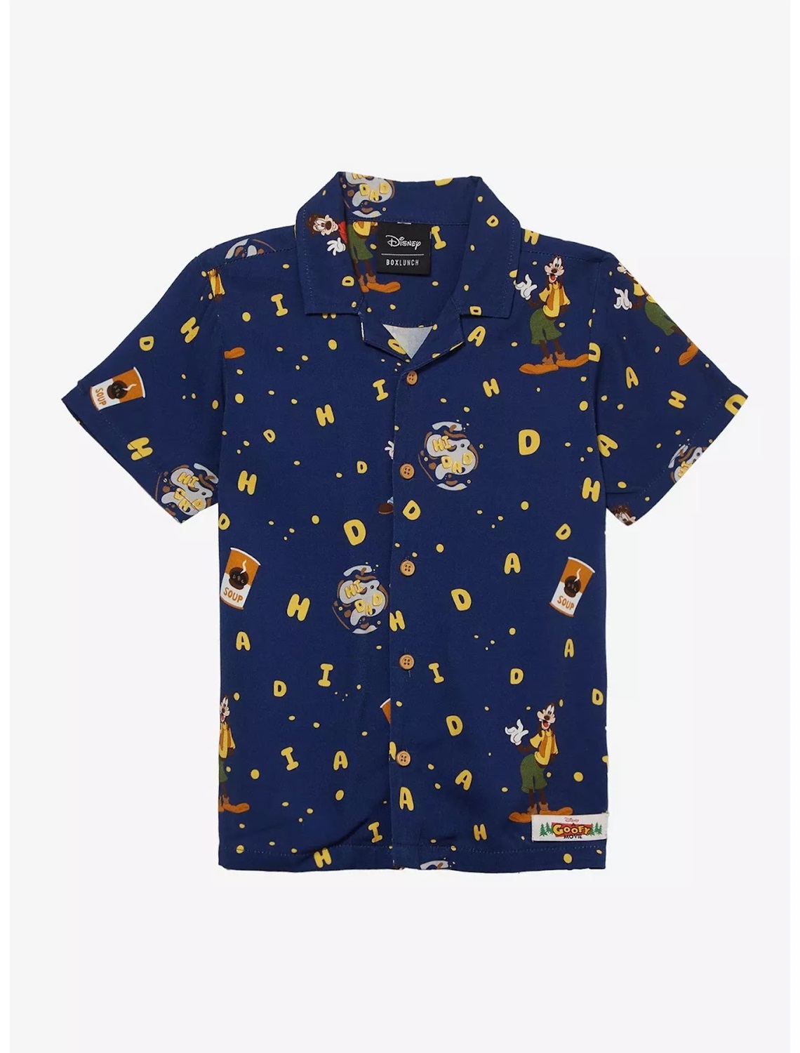 Disney A Goofy Moovie Alphabet Soup Allover Print Toddler Woven Button-Up - BoxLunch Exclusive ($18.32) - “Dress your little one up in Disney style with this A Goofy Movie button-up! Featuring an allover print of Goofy among alphabet soup and letters, this top is perfect for your kiddo's next Disney Parks trip."