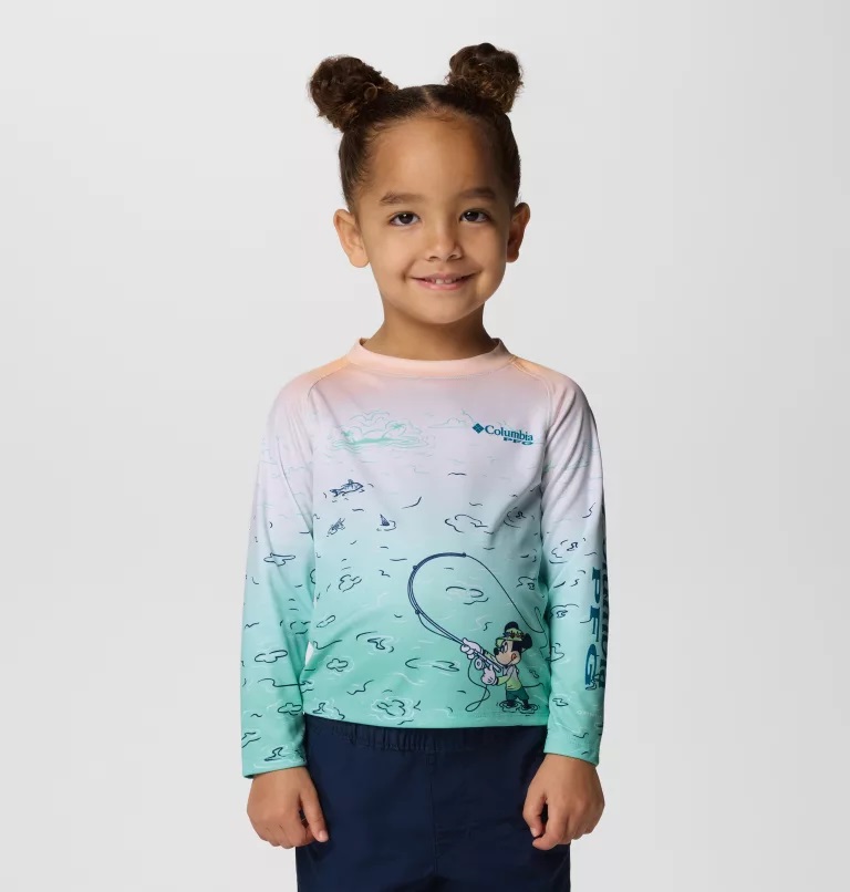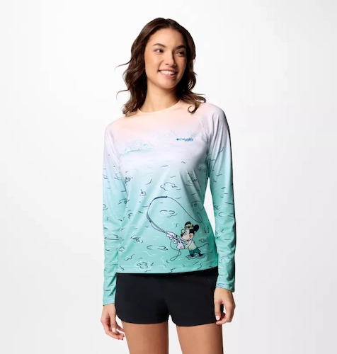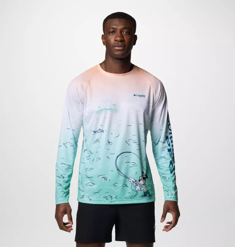 - The Mickey’s Outdoor Club collection features Columbia’s acclaimed PFG Super Slack Tide, Terminal Tackle, and Tidal Long Sleeve Shirts, complemented by accessories that display distinctive prints of Disney’s Mickey & Friends on a fishing adventure.