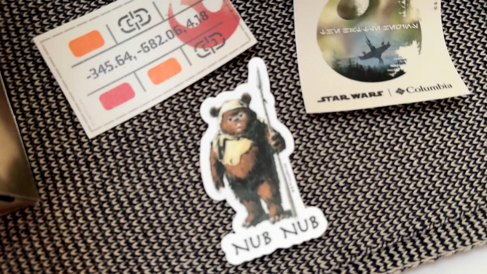 I also want to mention that inside the box were three very cool decals depicting more Rebel Alliance iconography, a Death Star outline with the Aurebesh phrase "The Battle Begins" over the Imperial shield generator, and an Ewok saying "Nub Nub" (I'm admittedly more familiar with "Yub Nub" but I'm sure Ewokese is a complex language).