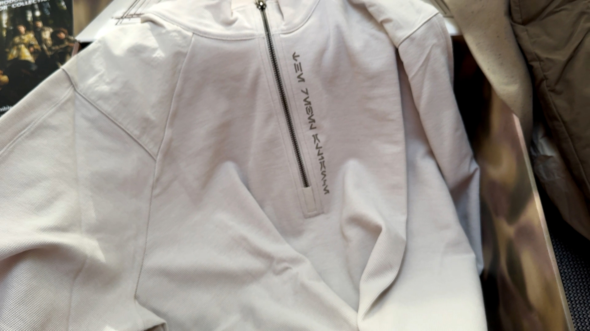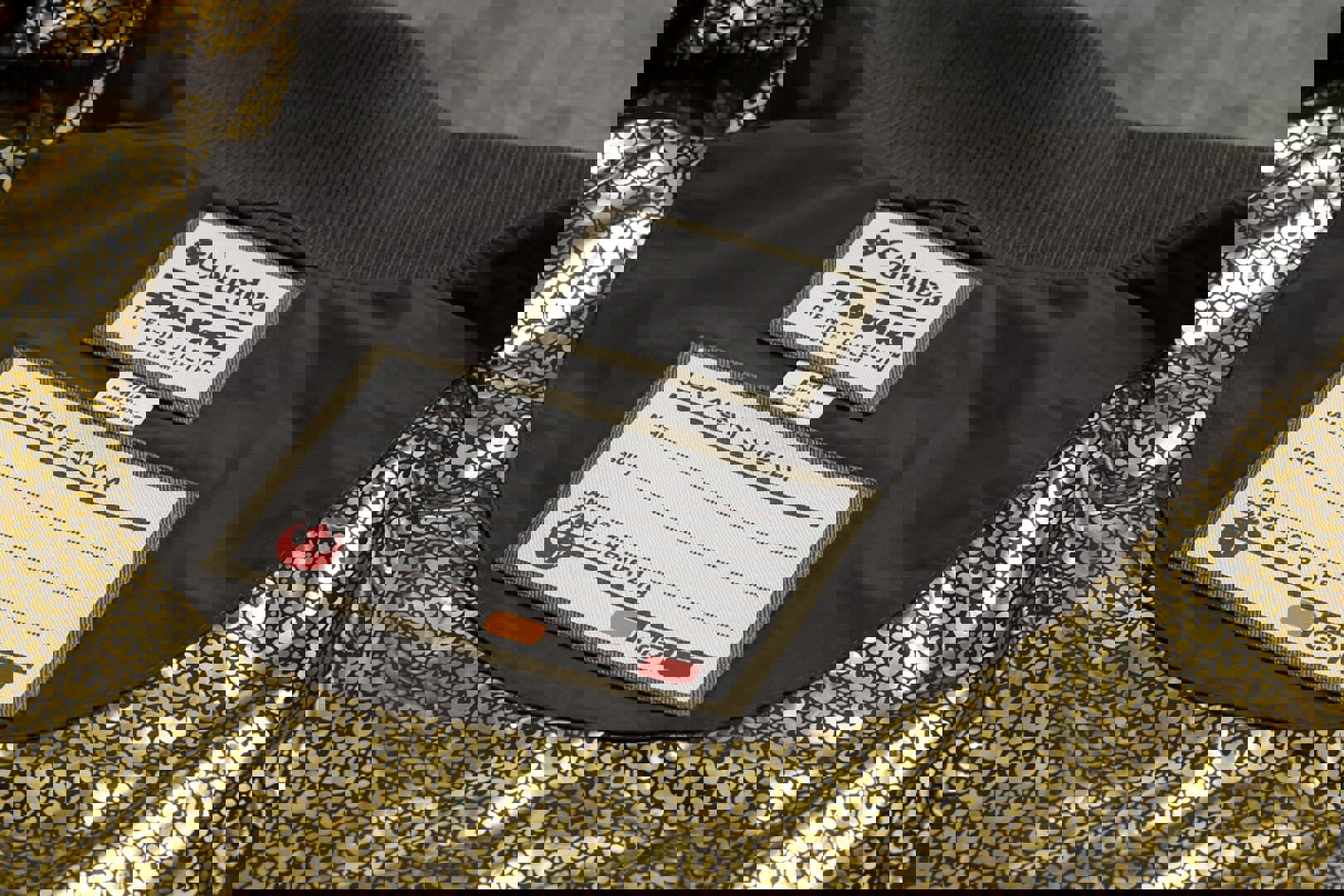 Lastly, we also received the Endor Issue Half Zip ($90), which is clearly marked in Aurebesh as belonging to the Rebel Alliance and is made from a lightweight cotton-blend fabric.