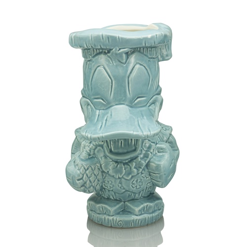 Aloha Donald Geeki Tikis mug features him drinking from a coconut in his tropical wear. $35