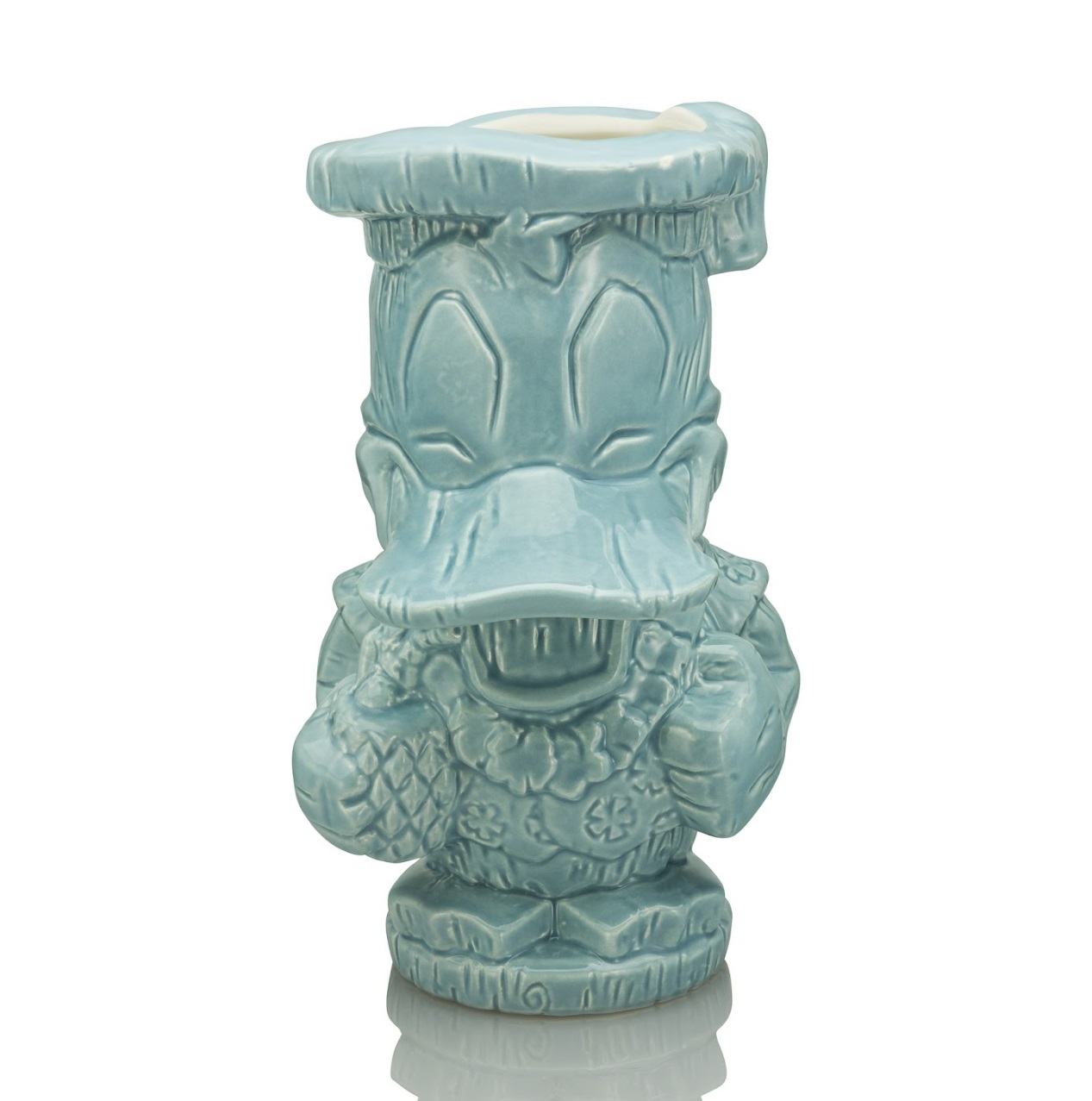 Aloha Donald Geeki Tikis mug features him drinking from a coconut in his tropical wear. $35