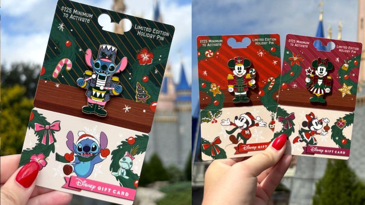 - Disney Parks has shared this year’s set of the 2025 Disney Gift Card Limited Edition holiday pins, and this year they feature art with Mickey, Minnie, Stitch and Olaf.