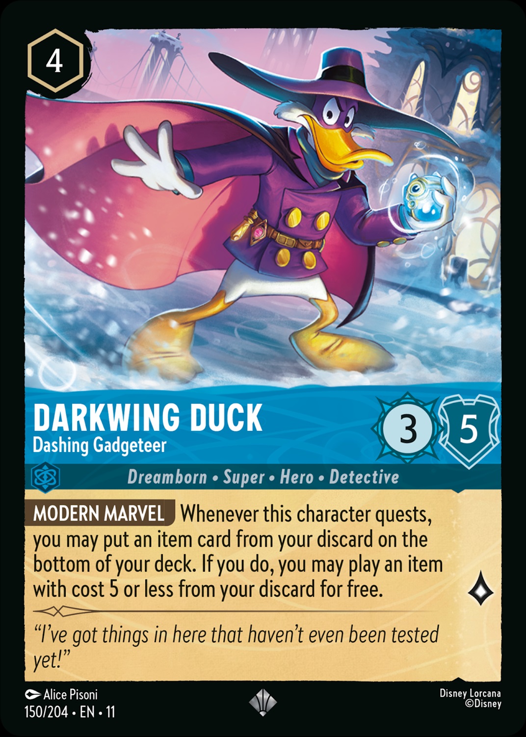 • Then, Ravensburger just announced that the next set Winterspell — which adds Darkwing Duck to the mix — would see a prerelease on February 13th followed by February 20th wide release.