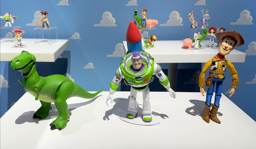Also debuting are Click Figs, stylized 3.5-inch action figures with repeatable motion and signature poses. Fall 2025 releases include Jessie and Woody ($9.99 each, 4+), each with a head-activated action that shifts the figures between iconic stances. Buzz Lightyear ($9.99, 4+, Available Now) features a flight-ready pose with raised fist and deployed wings, triggered by pressing his head, accompanied by a satisfying click.