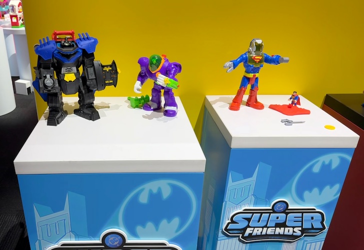 Imaginext® DC Super Friends™ Batman™ Flight Mech ($49.99, Fall 2025) features a 14.5-inch robot suit inspired by DC Super Hero Metal Force, with lights, sounds, moving arms, wings that open, a projectile launcher, three projectiles, and a batarang. The set includes a 3-inch Batman™ figure that fits in the cockpit for immersive superhero play. Imaginext® DC Super Friends™ Joker™ Hammer Mech ($29.99, Fall 2025) offers 10 inches of villainous action, with a hammer accessory, removable projectile launcher, one projectile, eject button, and articulated arms. A 3-inch Joker figure is also included. Imaginext® DC Super Friends™ Superman™ Insider & Exo Suit ($26.99) comes with a poseable Superman™ figure and an Exo Suit cockpit that activates lights, sounds, and projectile-launching action via Power Pads.