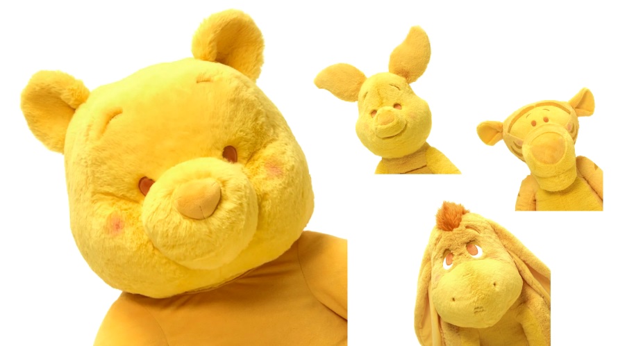 - The centerpiece of the collection is the range of plush toys. Winnie the Pooh, Tigger, Piglet, and Eeyore have received an all-yellow makeover, complete with a special edition patch embroidered with the Disney Store at Selfridges logo. The plush will be available in small (£185 each), medium (£200 each), and super large (£200 each) sizes, with select characters also appearing in a premium "Blushing Cheeks" design.