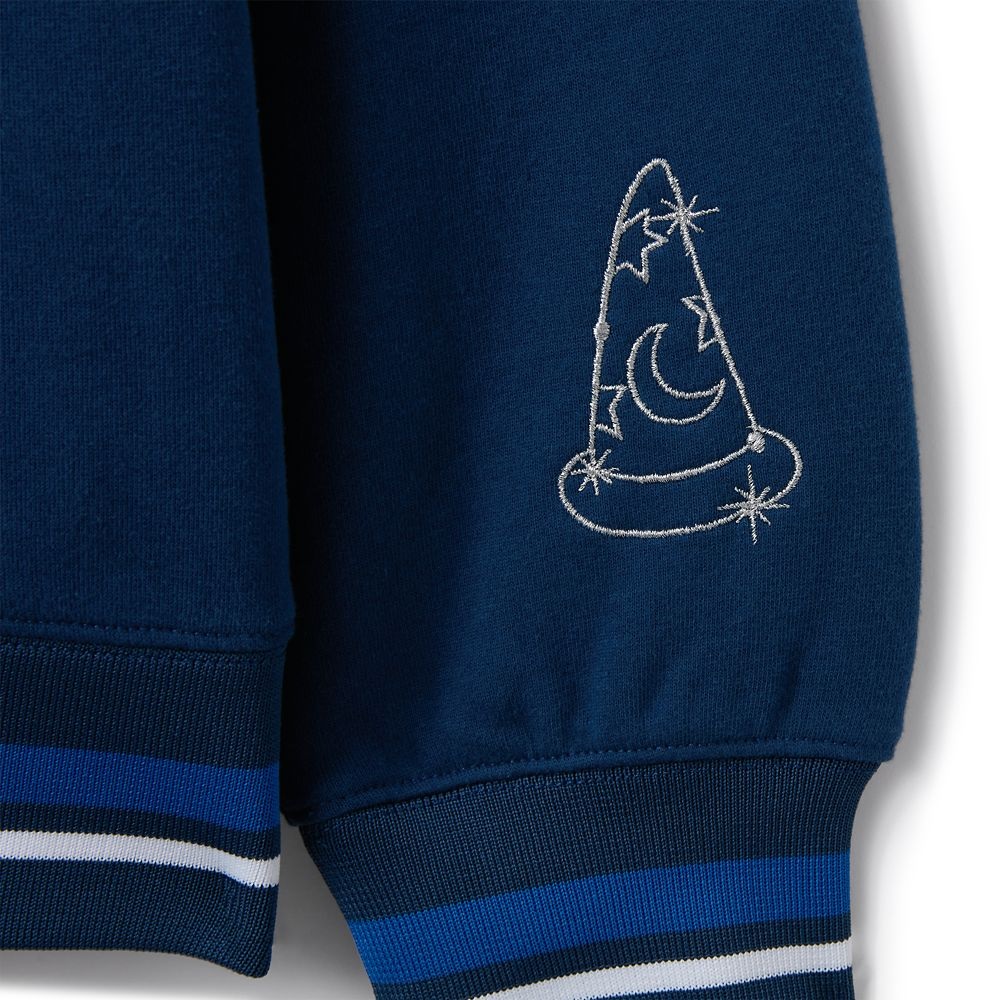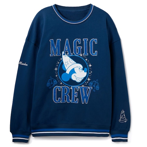 - The blue pullover reads “Magic Crew" with a smiling Sorcerer Mickey and two enchanted brooms carrying buckets of water.