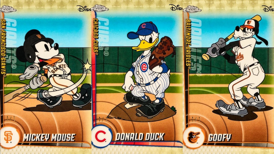 - Disney, Topps and MLB are partnering together for their first-ever collaboration, bringing Mickey, Donald and Goofy to official MLB trading cards for the first time.