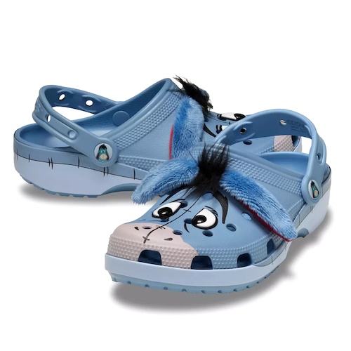 - Gloomy days become a thing of the past when you slip into the cozy embrace of Crocs' croslite foam clogs, featuring Eeyore, the beloved donkey from Winnie the Pooh.