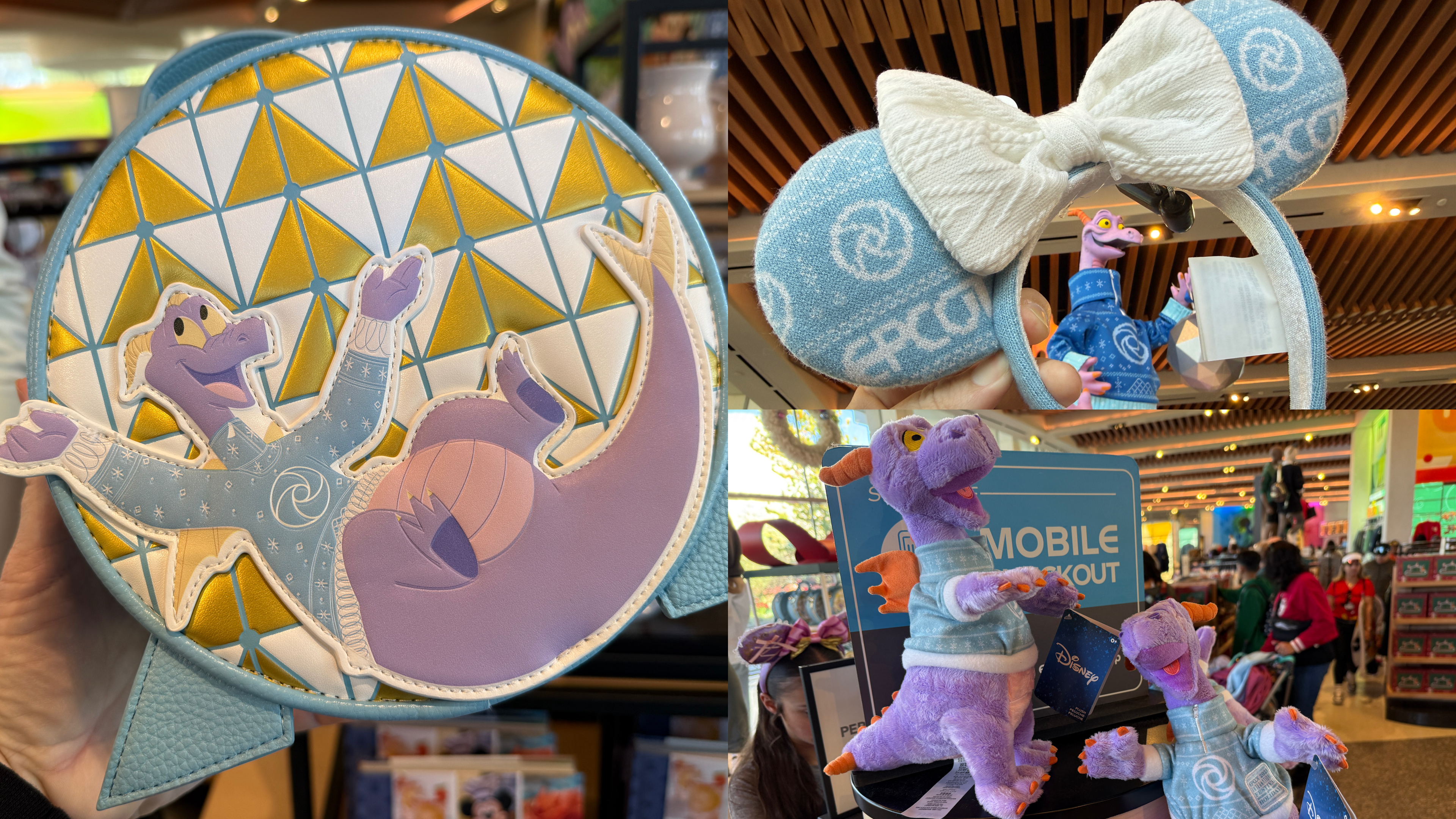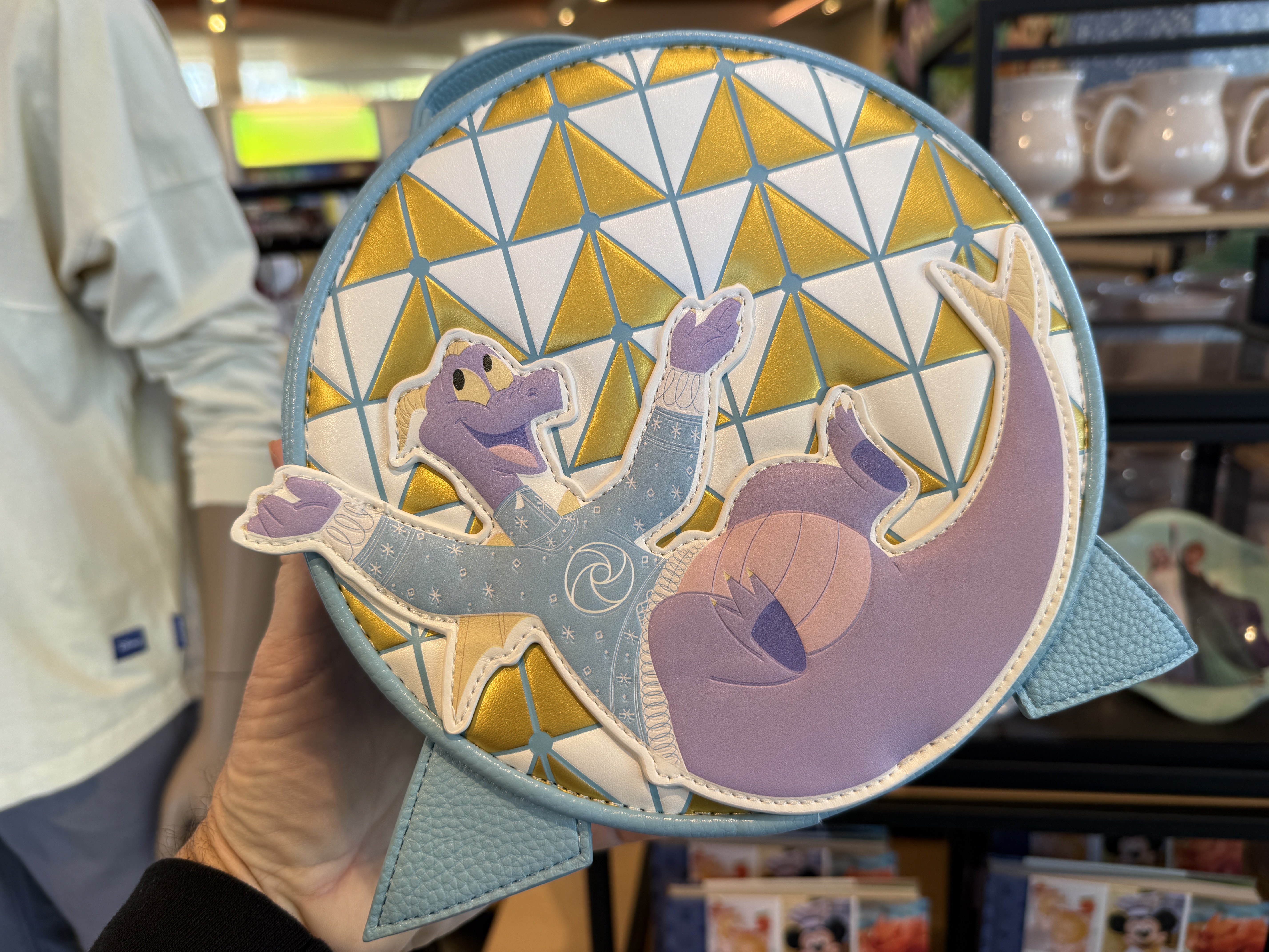Figment himself is featured in his sweater on a new Loungefly purse ($44.99), which also features a Spaceship Earth-inspired backdrop.