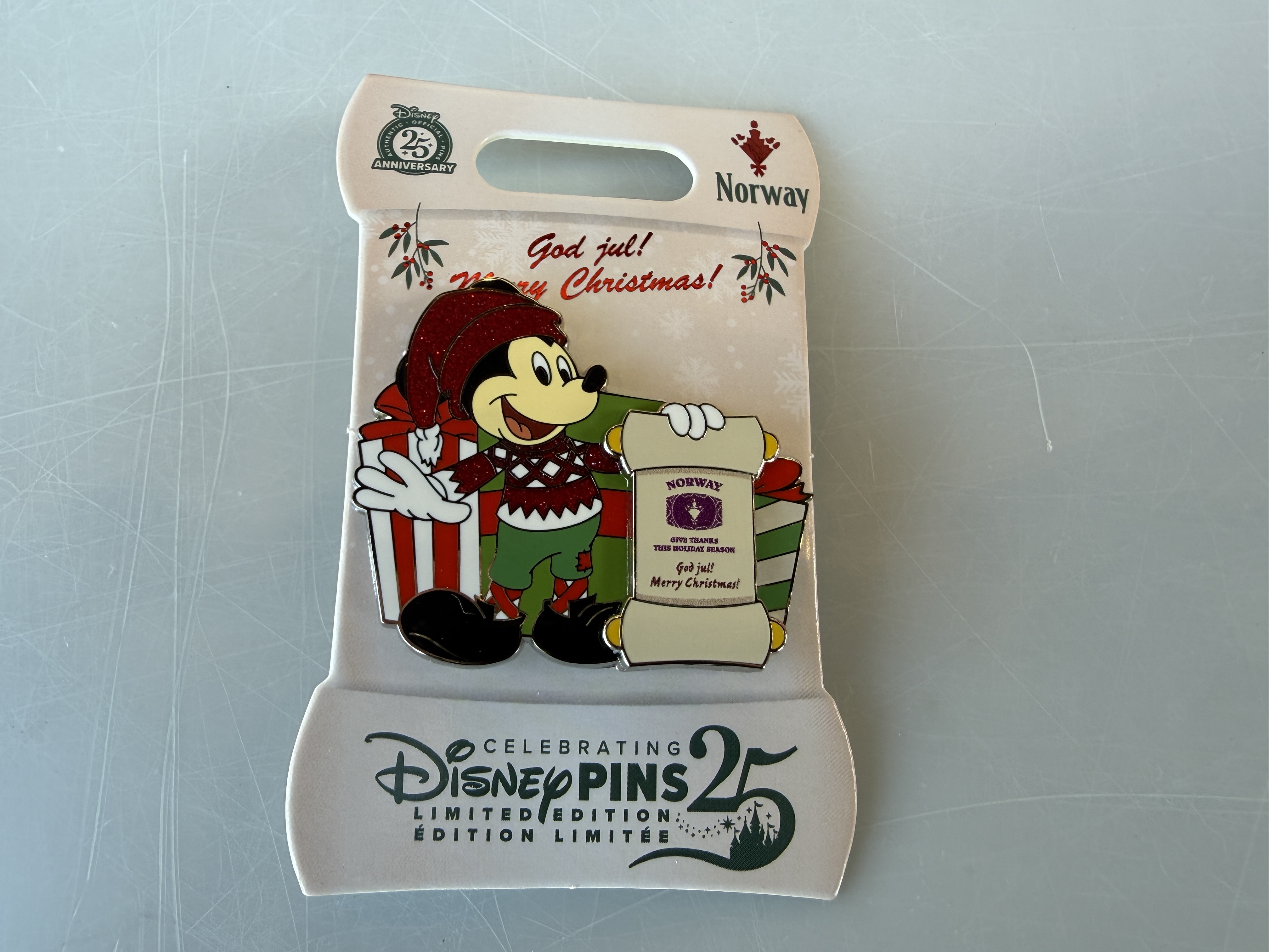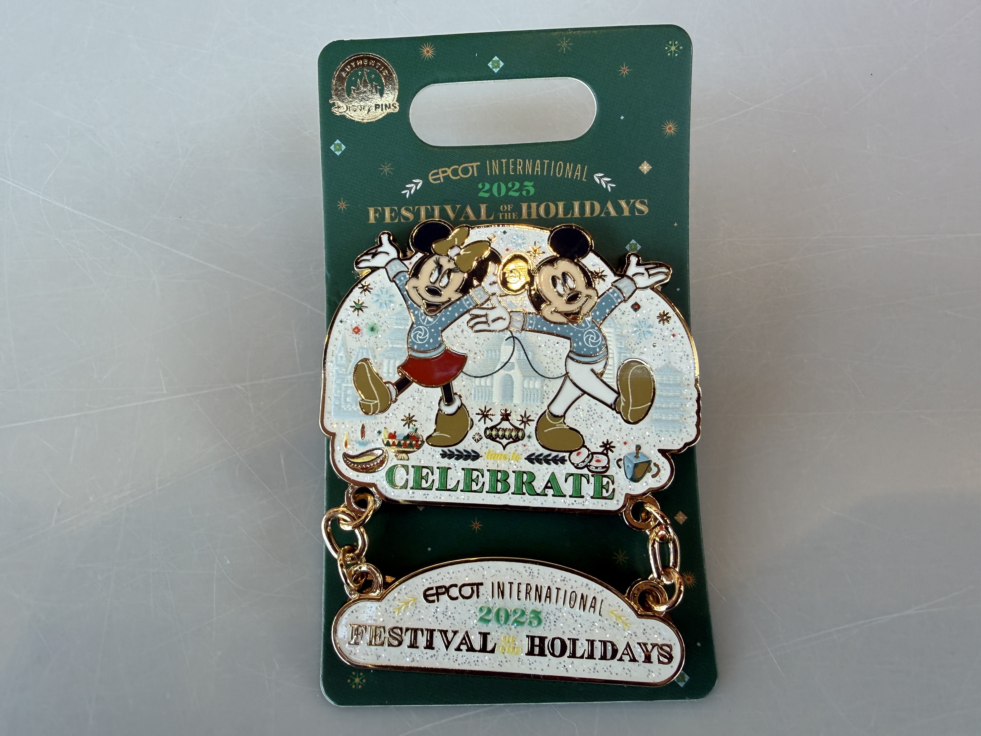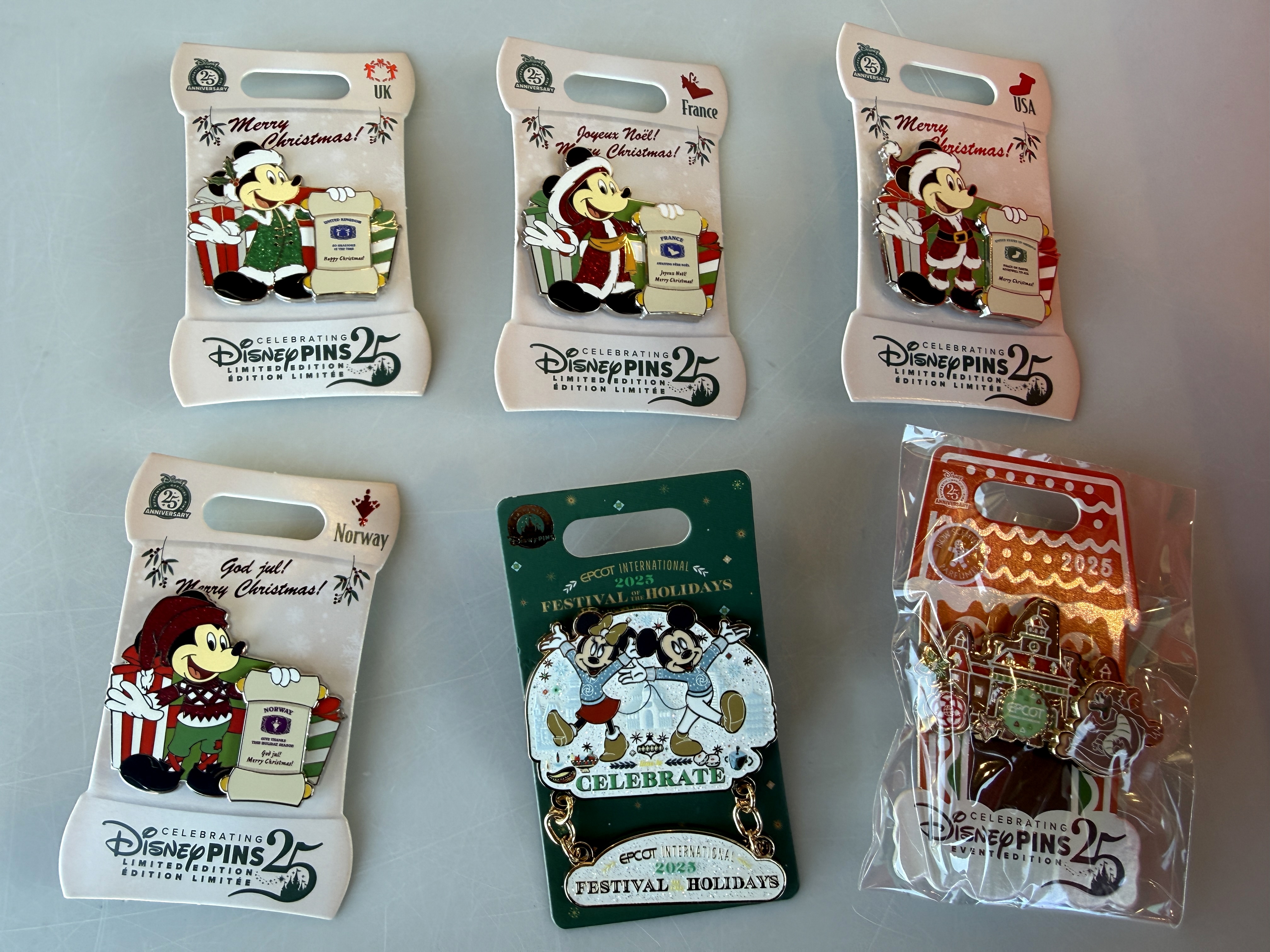 Finally, we have the usual assortment of pins, mostly featuring Mickey Mouse, but there is also one featuring The American Adventure's Gingerbread House, and one featuring Mickey and Minnie wearing Figment's sweater. The pins range in price from $19.99 to $22.99.