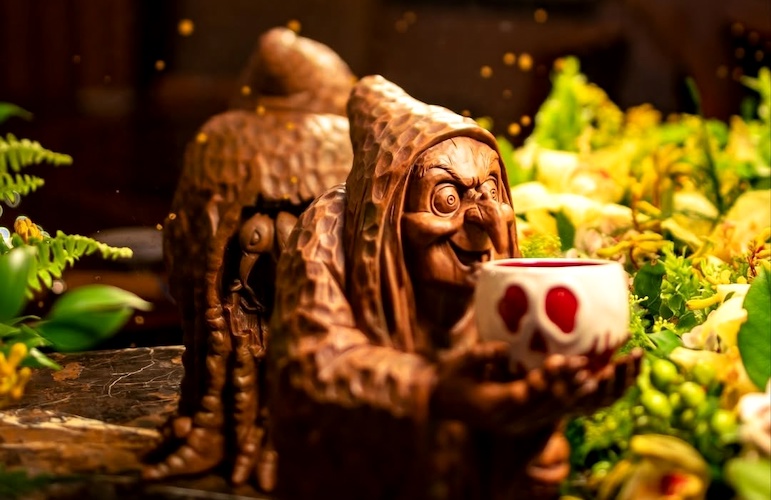- The same day that a new Evil Queen Tiki Mug arrives at Trader Sam’s Enchanted Tiki Bar, the new The Witch and Poison Apple Mug will be available to purchase at the Carthay Circle Lounge in Disney California Adventure.