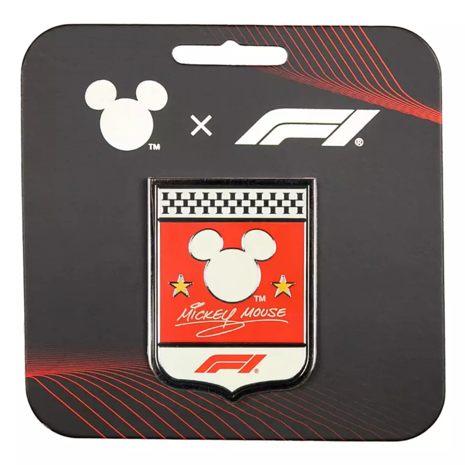 - Disney x Formula 1 Shield Pin ($20): Created specifically for the Las Vegas Grand Prix, this enamel shield pin features a Mickey icon and signature placed between a checkered band and the official Formula 1 logo.