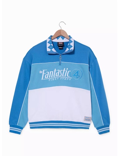 - Apparel & Accessories: Features exclusive Fantastic Four-themed clothing (t-shirts, jerseys, jackets, dresses) and accessories like bags, wallets, pins, lanyards, and keychains — available in standard and plus sizes