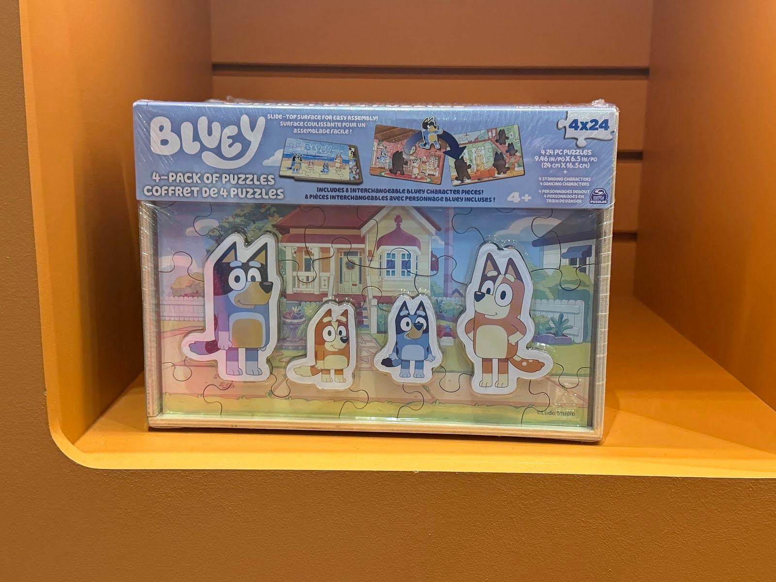 From the jump, we get right into the world of Bluey and her family and friends with adorable plush toys, mugs, games, books, and more.