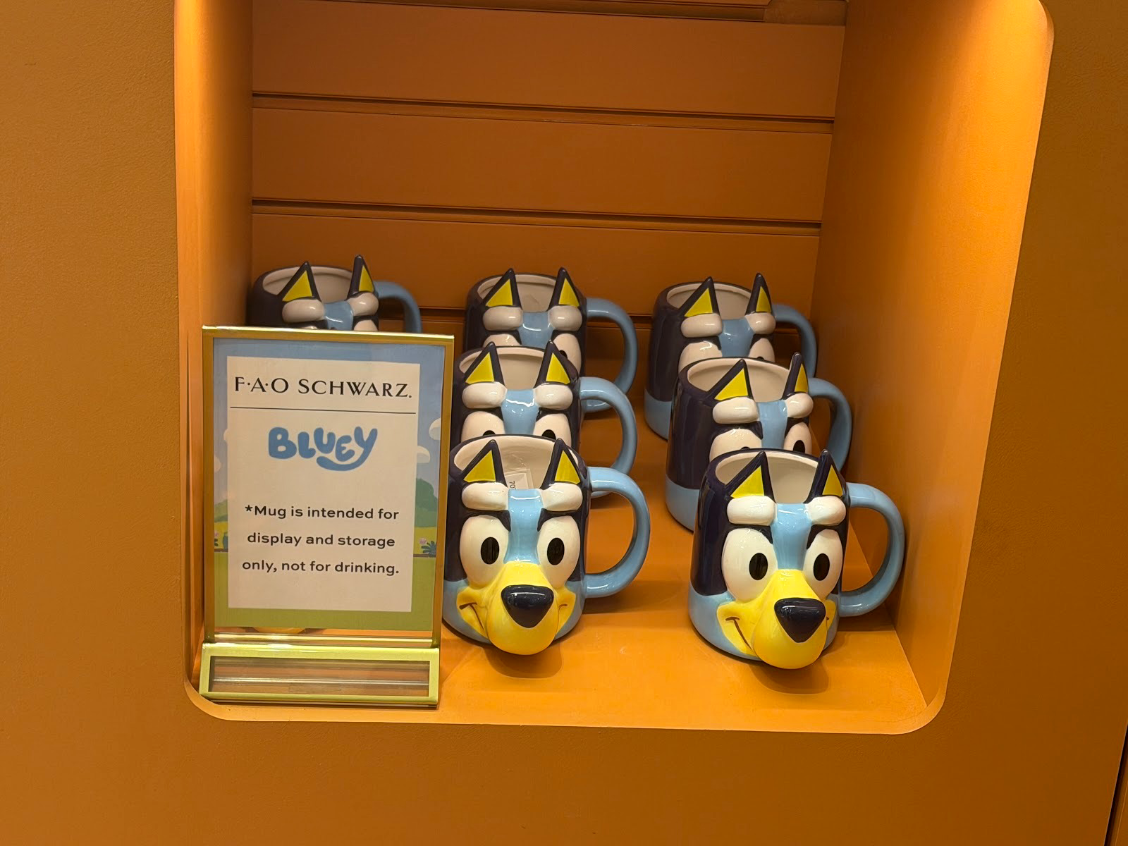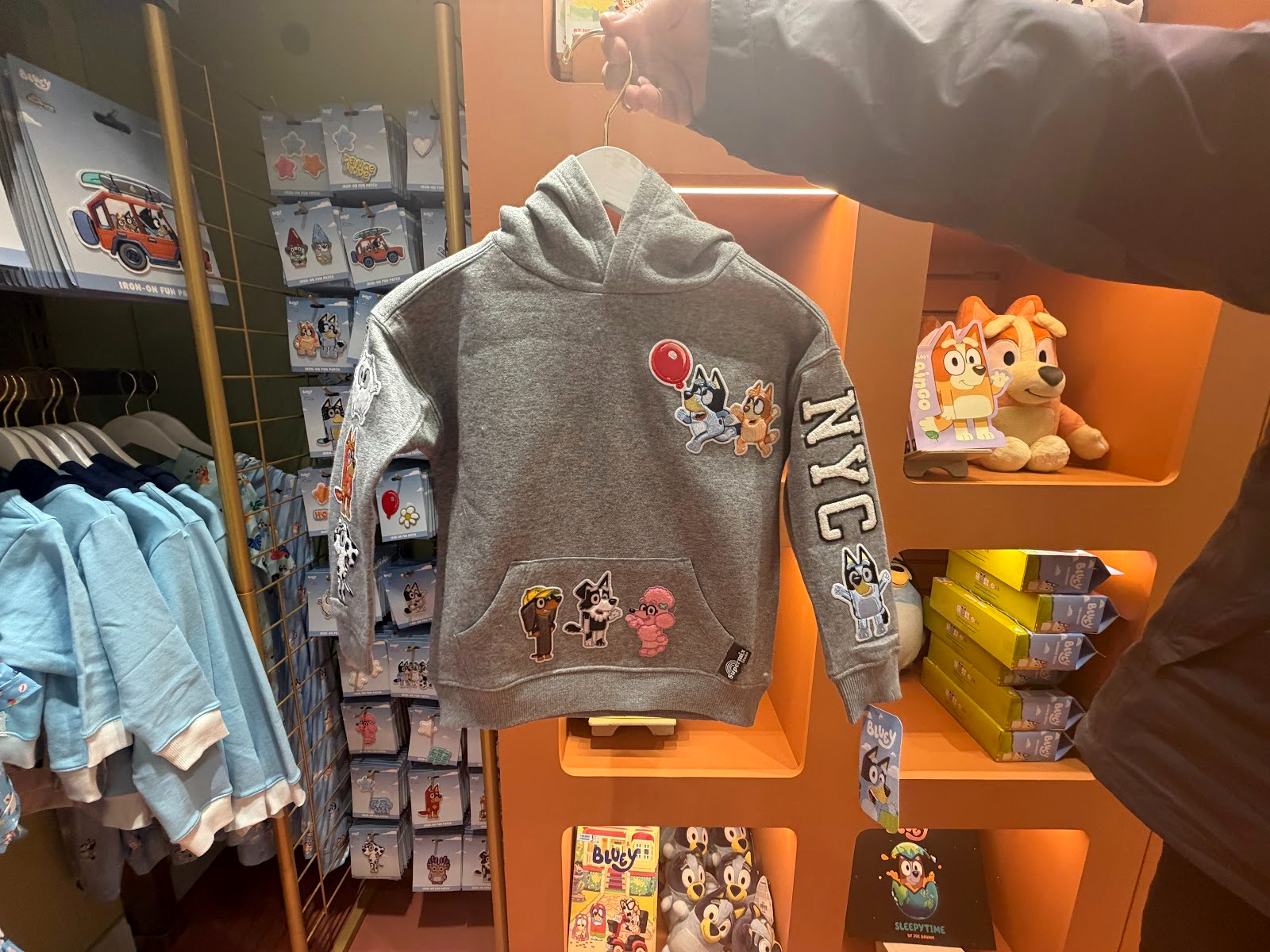 Along with the toys and fun merchandise items, there is plenty of Bluey apparel, featuring our favorite blue heeler and some even brandished with an "NYC" reminding you that you got it on your visit to the Big Apple.