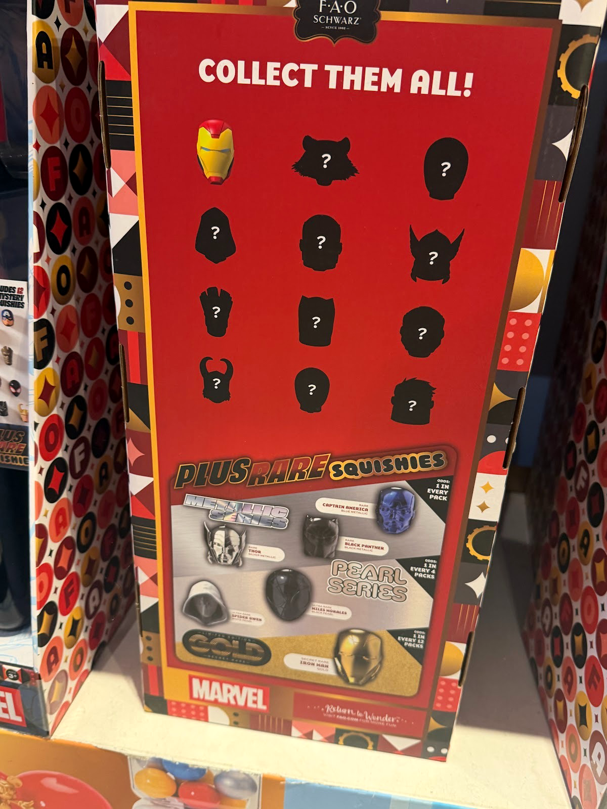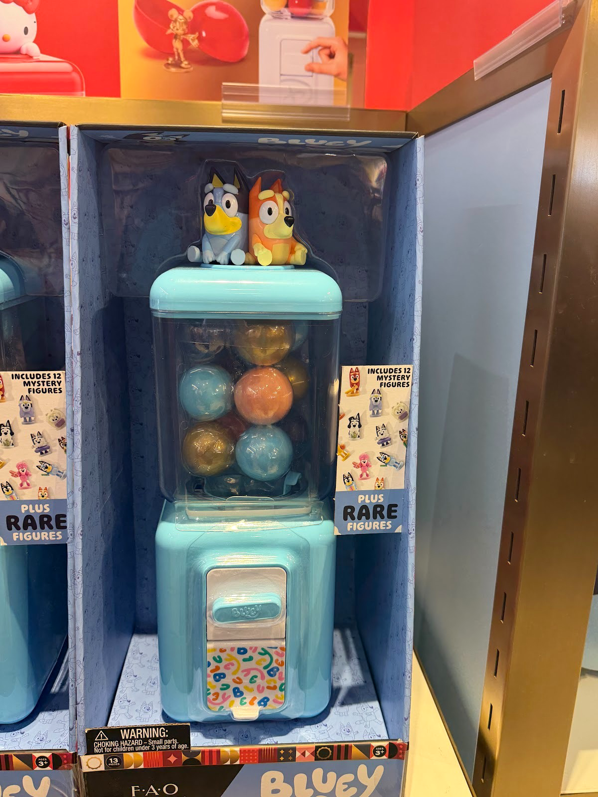 Outside of the world of Bluey, there are fun blind box toys, embedded in a faux vending machine that feature different hidden characters in colorful spheres. We found a few featuring Disney princesses, some fun characters, more from the world of Bluey, and some Marvel favorites.