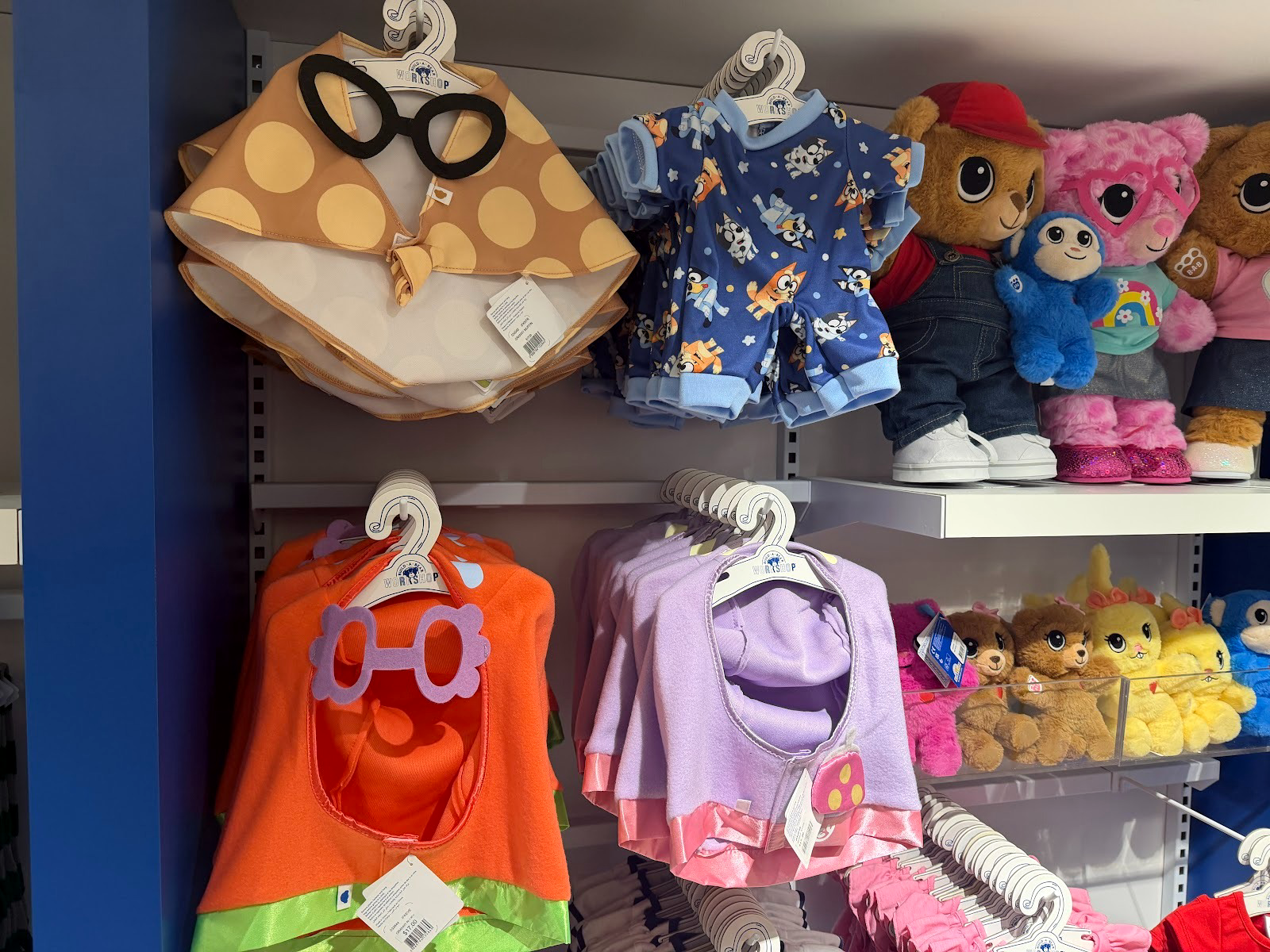FAO Schwarz also has dressable plush options, complete with different choices to complete a plush wardrobe. Once again, we find some Bluey options in this realm as well, with the tiny t-shirts and costumes themed to the smash-hit series, or featuring the characters.