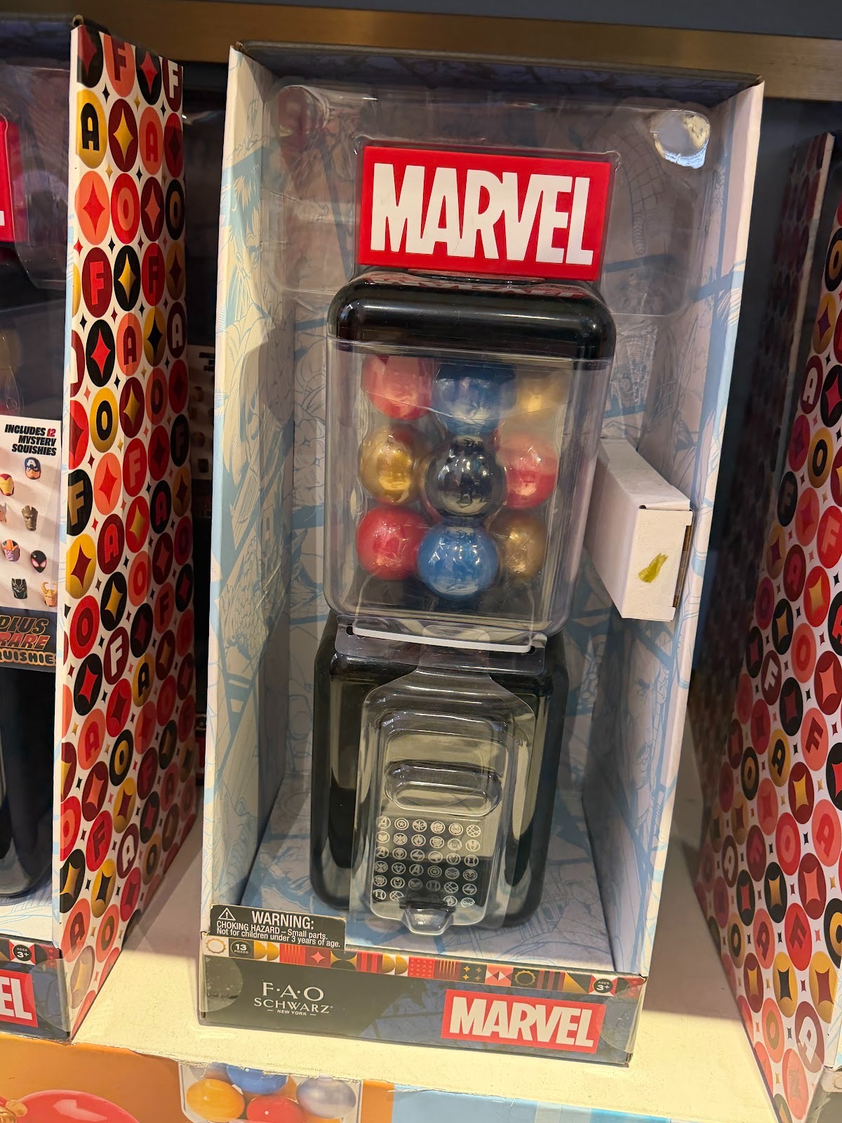 Outside of the world of Bluey, there are fun blind box toys, embedded in a faux vending machine that feature different hidden characters in colorful spheres. We found a few featuring Disney princesses, some fun characters, more from the world of Bluey, and some Marvel favorites.