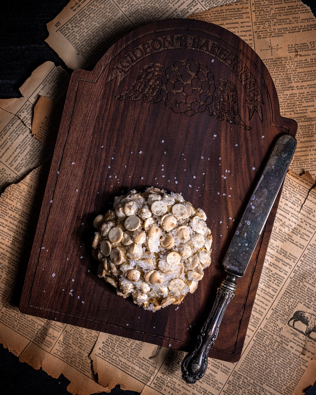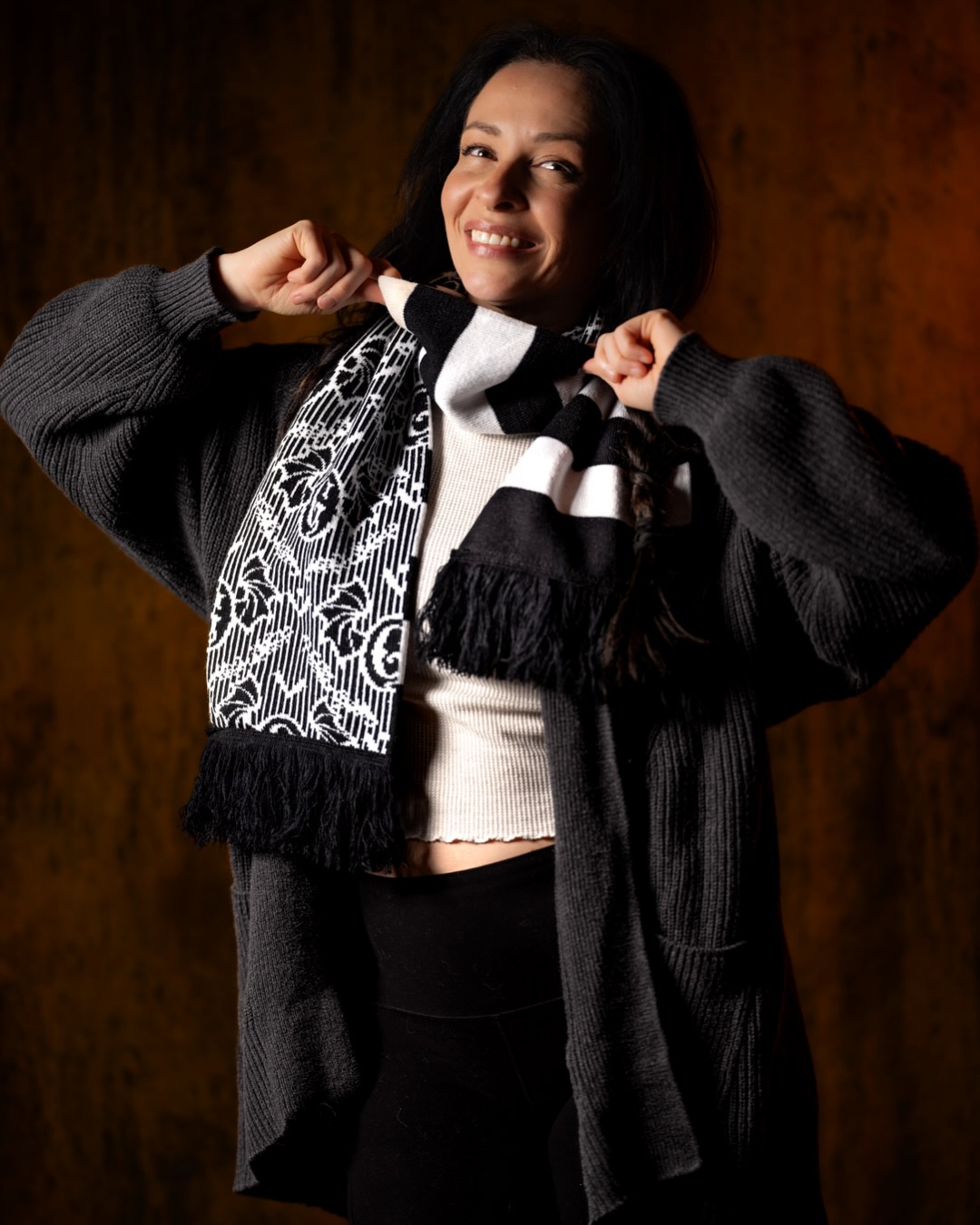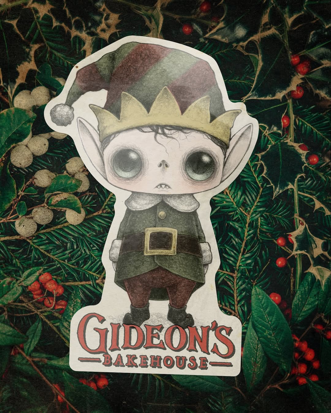 - Gideon's Bakehouse Winter Scarf: Hand woven knitted materials with a vintage take on the Winged G wallpaper that fans associate with Gideon's Bakehouse, with a reverse side of black and white stripes. LE 700.