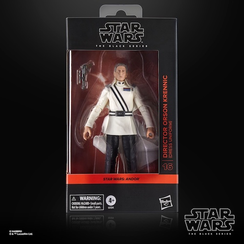 - Hasbro: “Tasked with leading the Empire’s most secretive experimental research division, Director Krennic is determined to make the Emperor’s dream of energy independence a reality. STAR WARS: THE BLACK SERIES includes 6-inch action figures, vehicles, and roleplay items from the nearly 50-year legacy of the STAR WARS galaxy, letting fans create galactic scenes with a faithfulness to STAR WARS comic books, movies, series, and more. This STAR WARS Hasbro action figure is detailed to look like Director Orson Krennic from ANDOR. Fans can display this 6-inch figure -- with series-inspired deco and design, including a soft goods cape -- in their collections. Comes with a blaster accessory. With exquisite features and decoration, THE BLACK SERIES embodies the quality and realism that STAR WARS fans love. Look for more STAR WARS figures to recreate scenes from the franchise on your shelf (Each sold separately, subject to availability)."