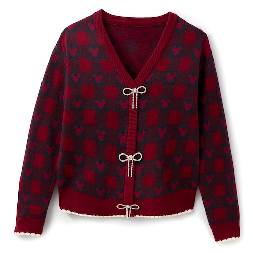 Mickey Mouse Icon Holiday Plaid Knit Cardigan Sweater for Women by Her Universe
