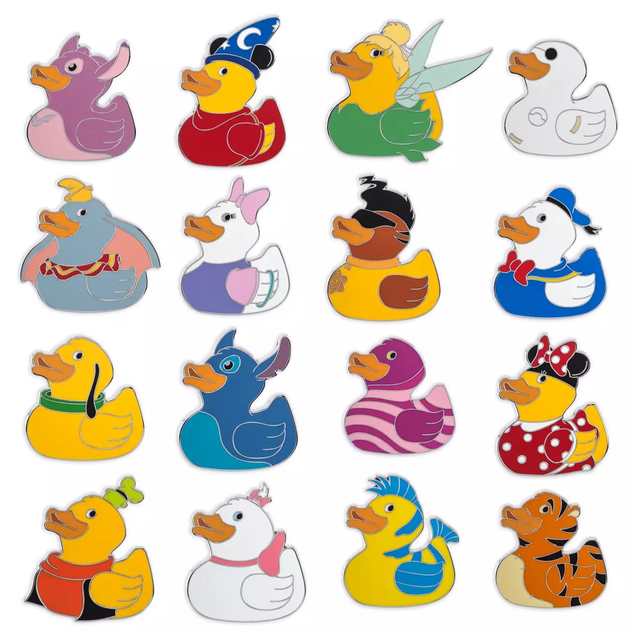 Boost your pin collection with these delightful Ducks of Disney designs available at Disney Store. Each blind pack includes five randomly selected pins from a set of 16 unique rubber ducky character designs.