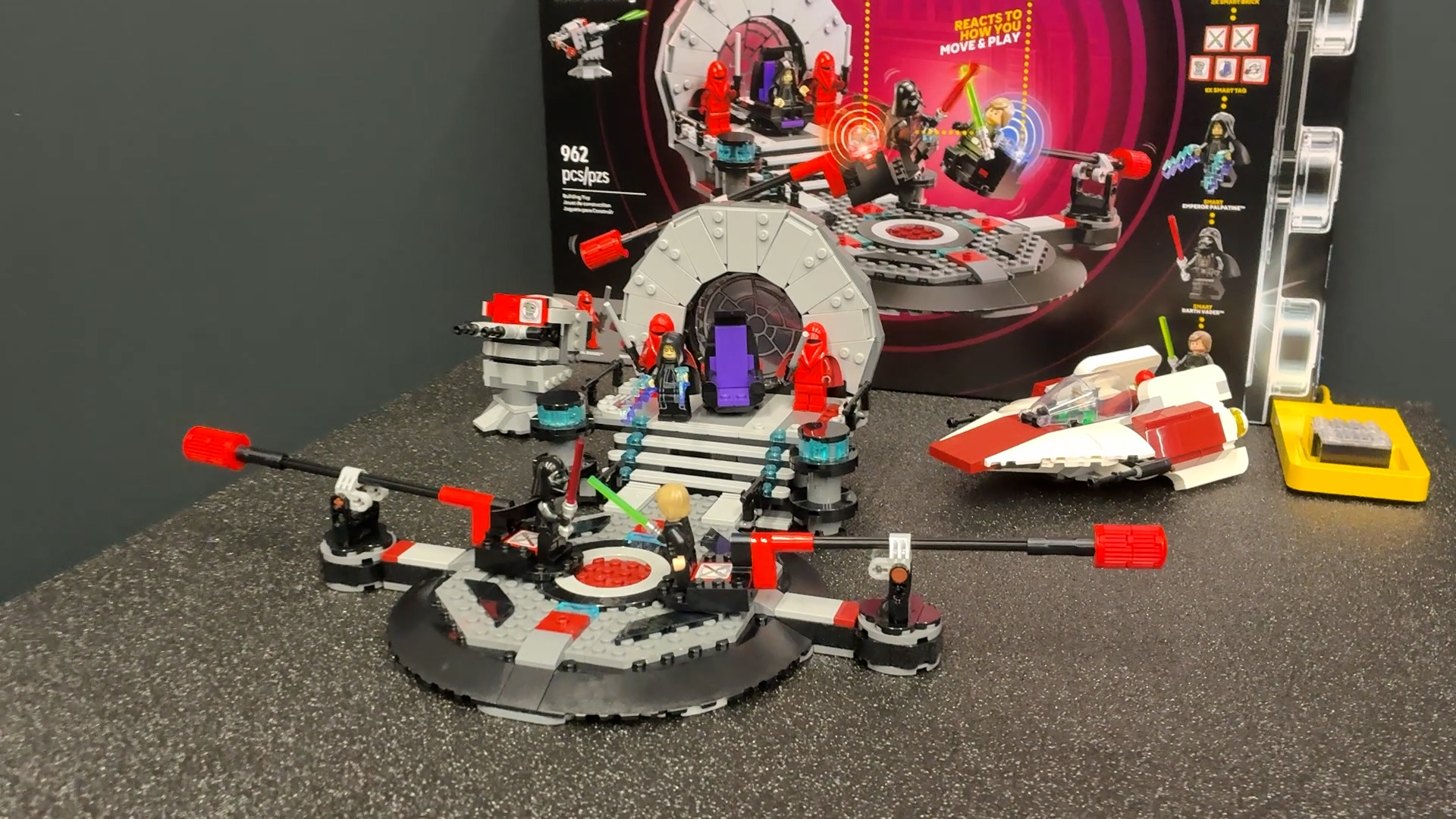 Another upcoming set features a Throne Room Duel. Basically, you can take two minifigs (such as Luke and Darth Vader) and have them engage in a legendary lightsaber battle, complete with sounds.