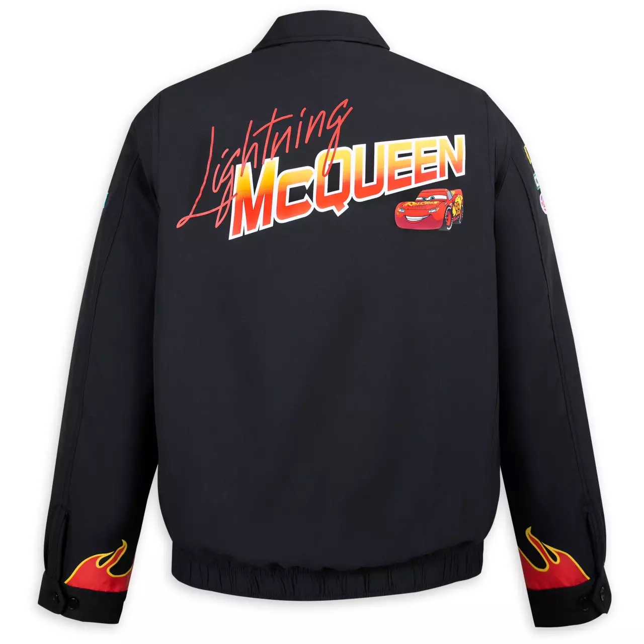 Embrace a trendsetting look with this stylish zippered jacket featuring a collar adorned with striking Lightning McQueen artwork and embroidered sponsor patches, now available at Disney Store.