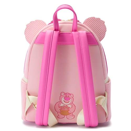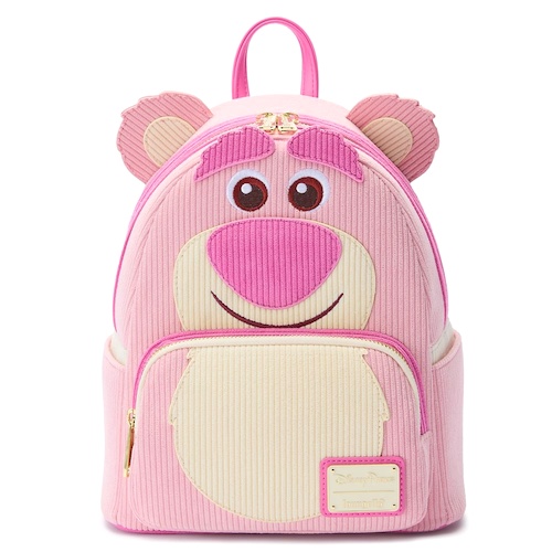 Say hello to Lotso who’s making his debut in Disney Store’s Loungefly Pastel collection! Today, the series welcomes the pink colored teddy who as we learn in Toy Story 3 has a sweet side and a dark side! The cuddly bear trades in his fuzzy, typically bright pink fur for a muted color palette and a corduroy-like material that can hold up on all your adventures.