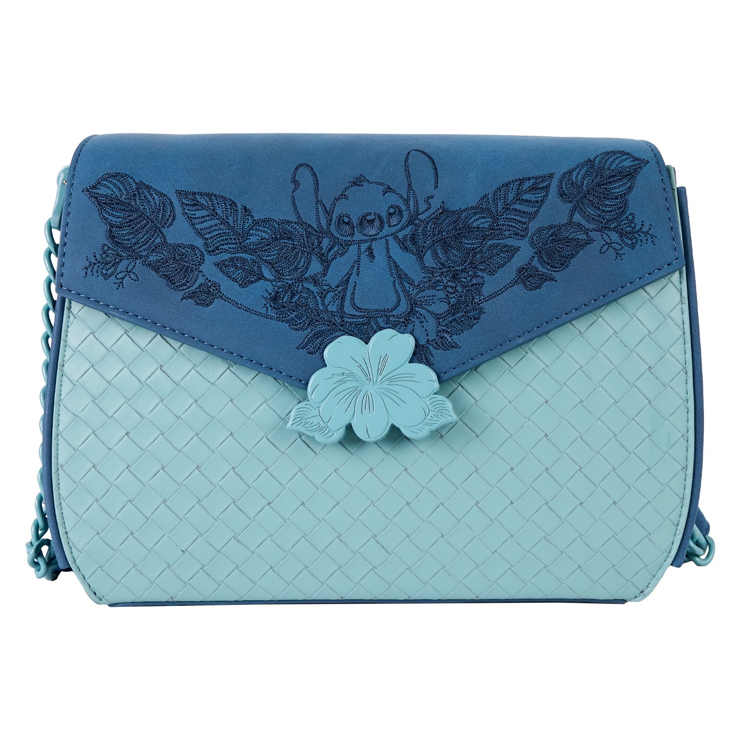 - Embroidery adds an appealing element with flower, leaves, and frond designs, along with charming images of Stitch too.