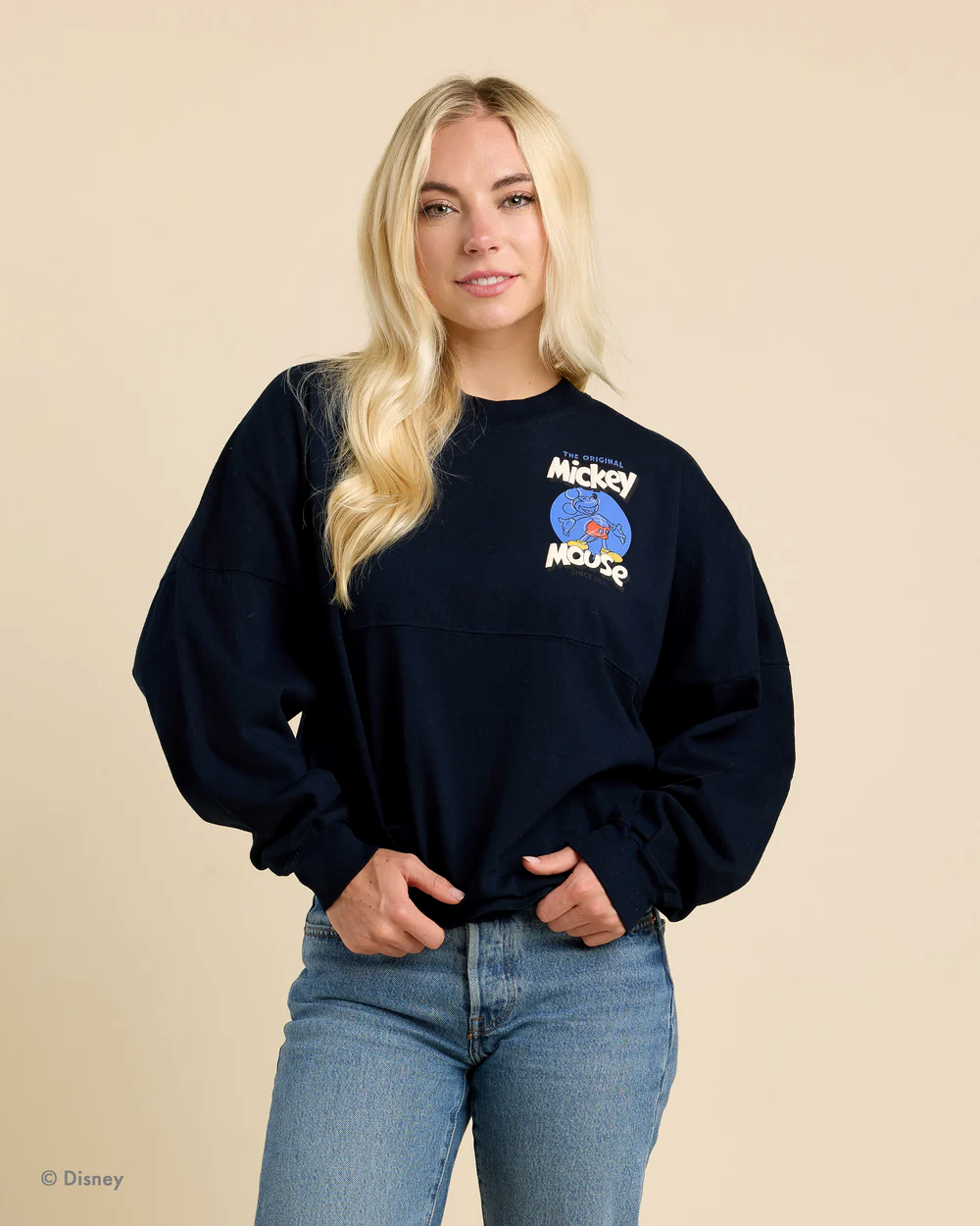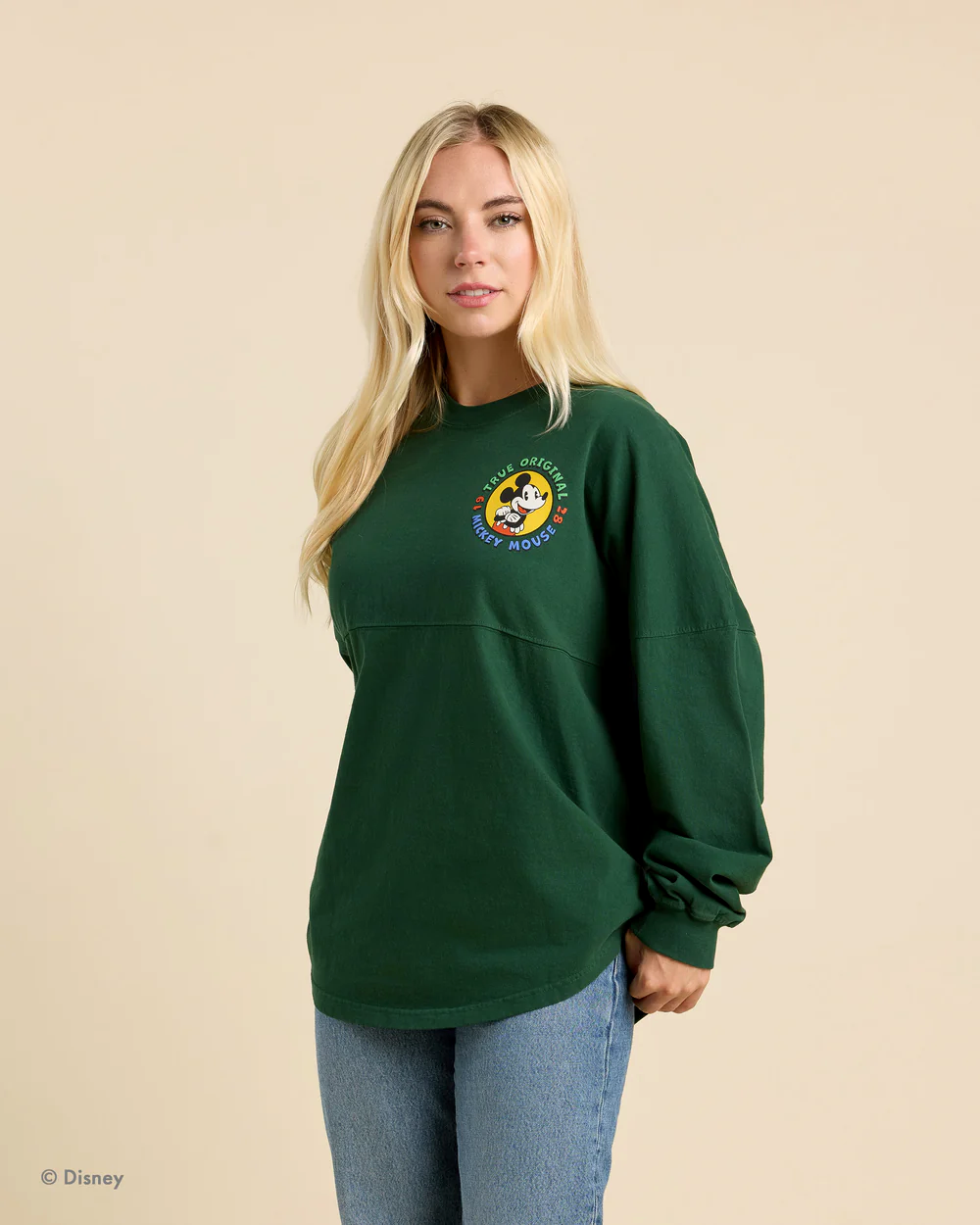 Classic Spirit Jersey featuring Disney's Mickey Mouse with a "True Original" oversized back print that is a must for a true fan. This Spirit Jersey features screen-printed artwork with puff paint details. Trademarked garment design with Dropped shoulders, long cuffed sleeves, banded neckline, and a curved hem. Flag label at side. $89.99