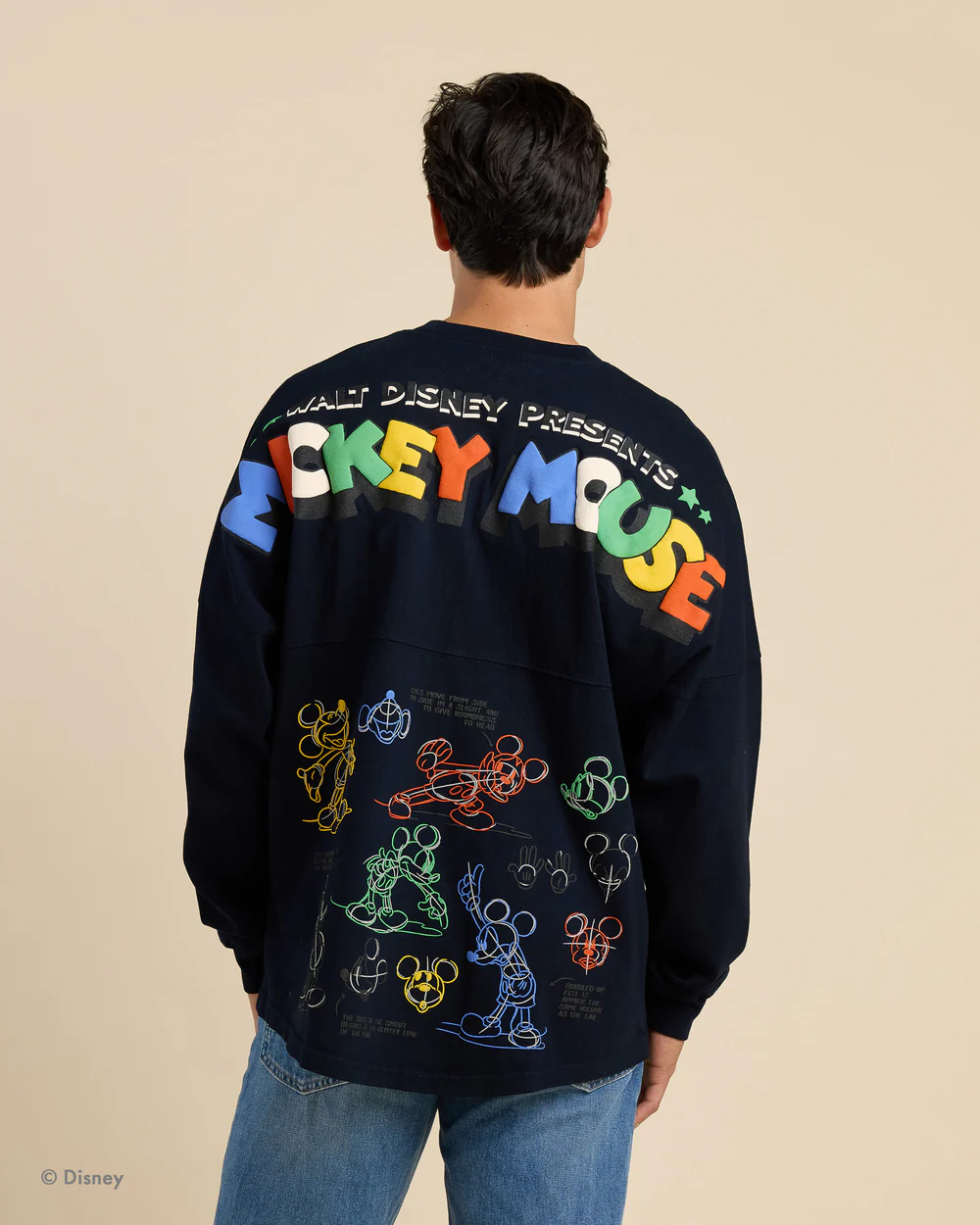 A classic Spirit Jersey featuring the sketch art that represents the moment animation shifted from simple movement to real personality. A creative leap that became a blueprint for character-driven storytelling. This Spirit Jersey features screen-printed artwork with puff paint details. Trademarked garment design with dropped shoulders, long cuffed sleeves, banded neckline, and a curved hem. Flag label at side. $89.99
