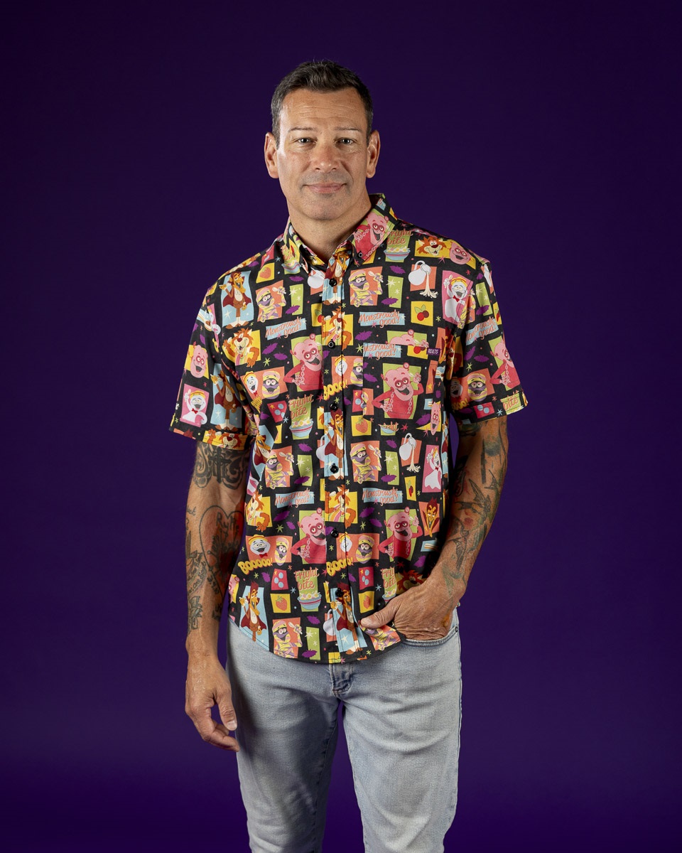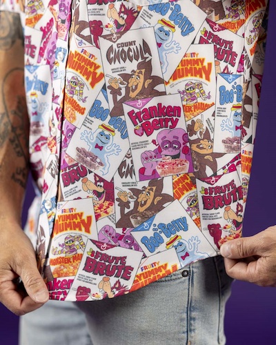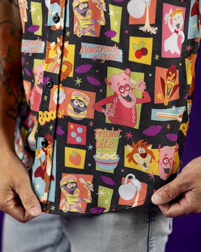 Our favorite lifestyle brand has invited the classic icons to be part of their apparel lineup and the culinary trio and friends Fruit Brute, and Fruity Yummy Mummy are featured on three new patterns for RSVLTS’ signature Kunuflex button down shirts that are available in classic (unisex) and women’s styles/sizing.